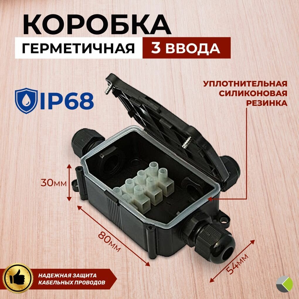 Коробка водонепроницаемая распределительная герметичная распаячная 60х70х30 IP68 3 ввода с клеммами 3pin