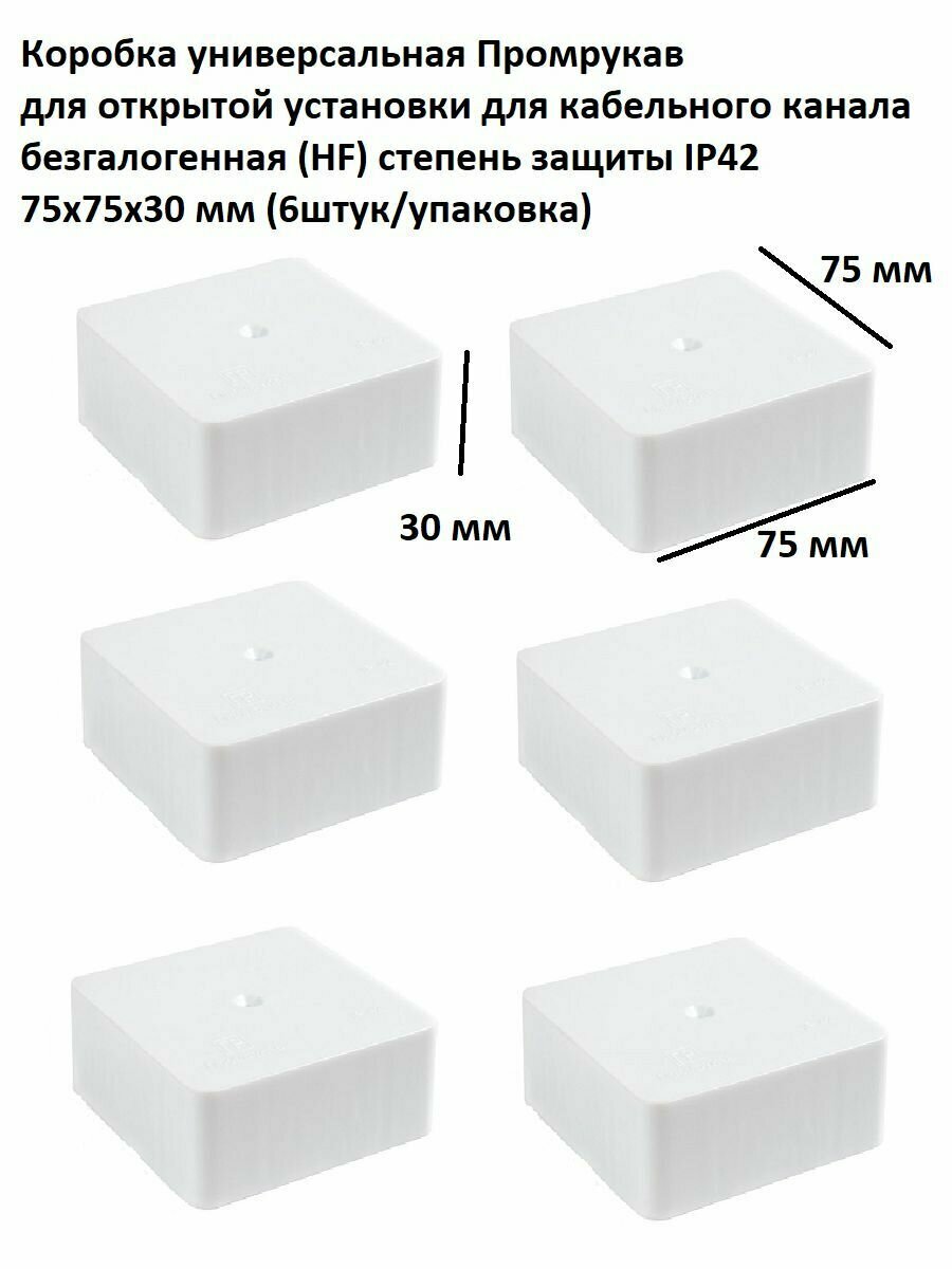 Купить Коробка универсальная Промрукав для открытой установки для кабельного канала безгалогенная (HF) 75х75х30 (6шт./упак.) степень защиты IP42
