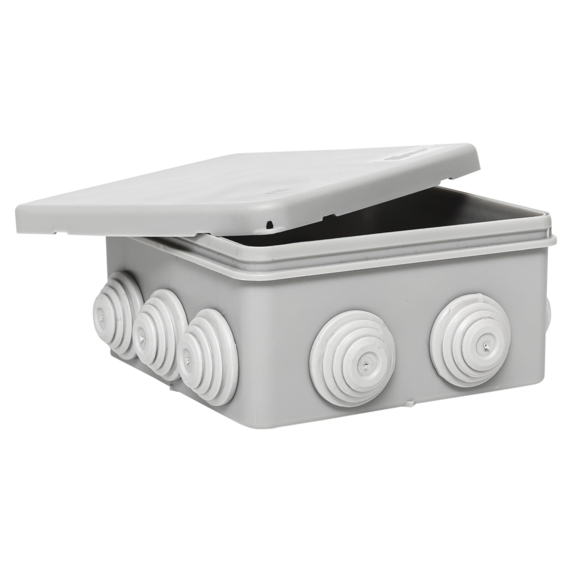 Коробка распределительная КМР-030-014 100х100х50 IP55 с крышкой для прямого монтажа 10 мембранных вводов сер. розн. стикер EKF plc-kmr-030-014-r