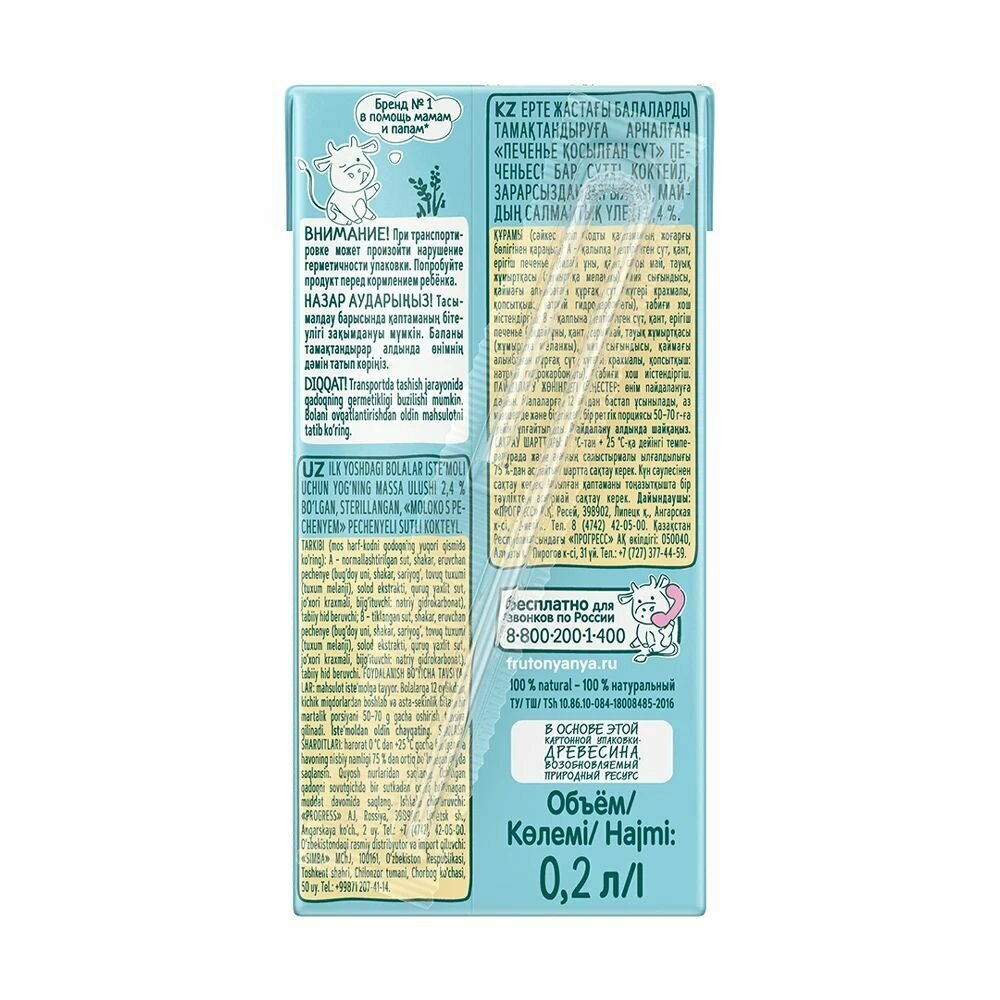 Молоко с печеньем ФрутоНяня 200мл c 12 месяцев, 6 шт интересное:
