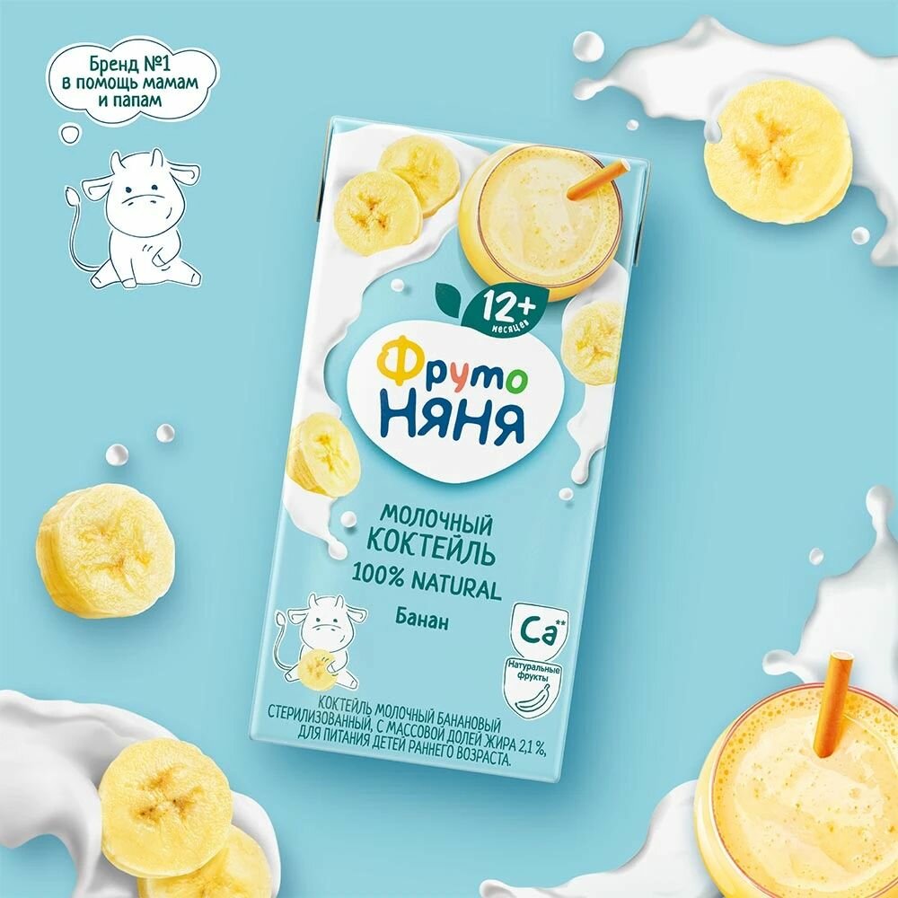ФрутоНяня коктейль молочный банановый с 12 месяцев, 0,2 л, 12 шт интересное: