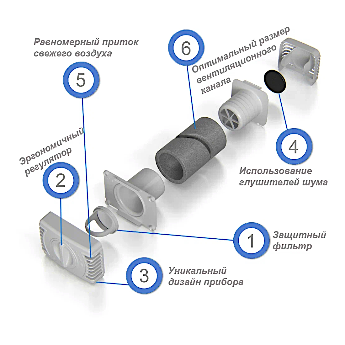 Приточный вентиляционный клапан "ИОН" светло-серый интересное: