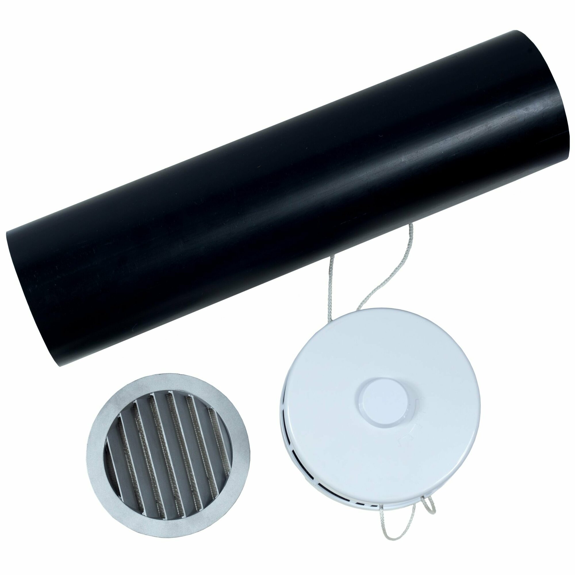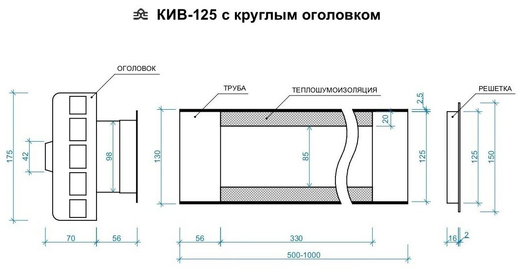Приточный клапан КИВ-125 с круглым оголовком, трубой 500мм и металлической решеткой (КИВ/КПВ-125-500)