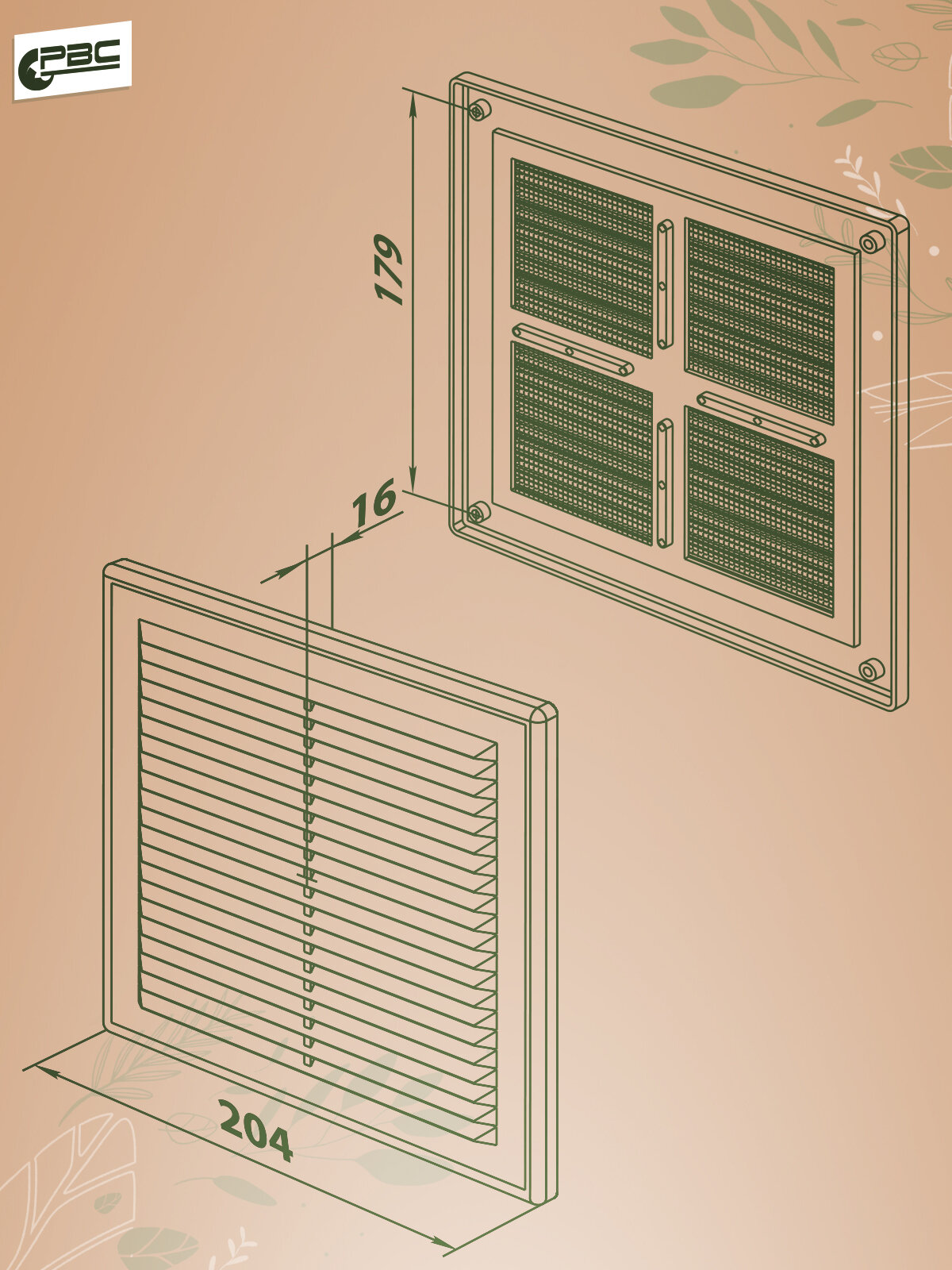 Решетка вентиляционная с москитной сеткой коричневая РВ 204х204
