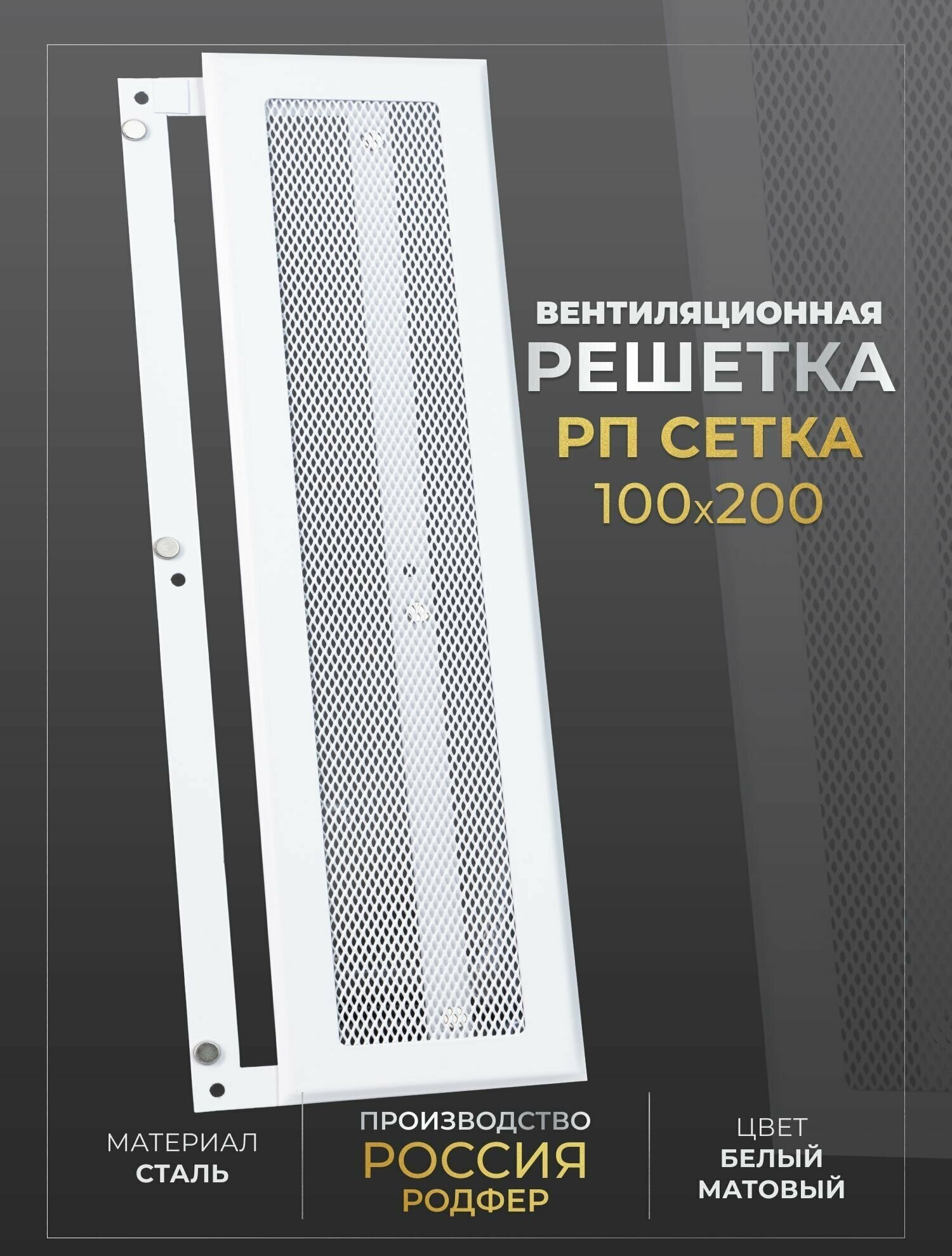 Решетка вентиляционная на магнитах съемная (РП100х200), металлическая, производство Родфер интересное: