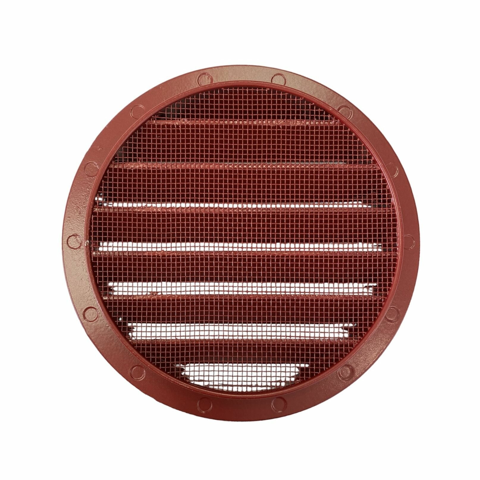 Купить Решетка вентиляционная круглая d125 мм металлическая RAL 3011 красный кирпич КИВ-125 с сеткой