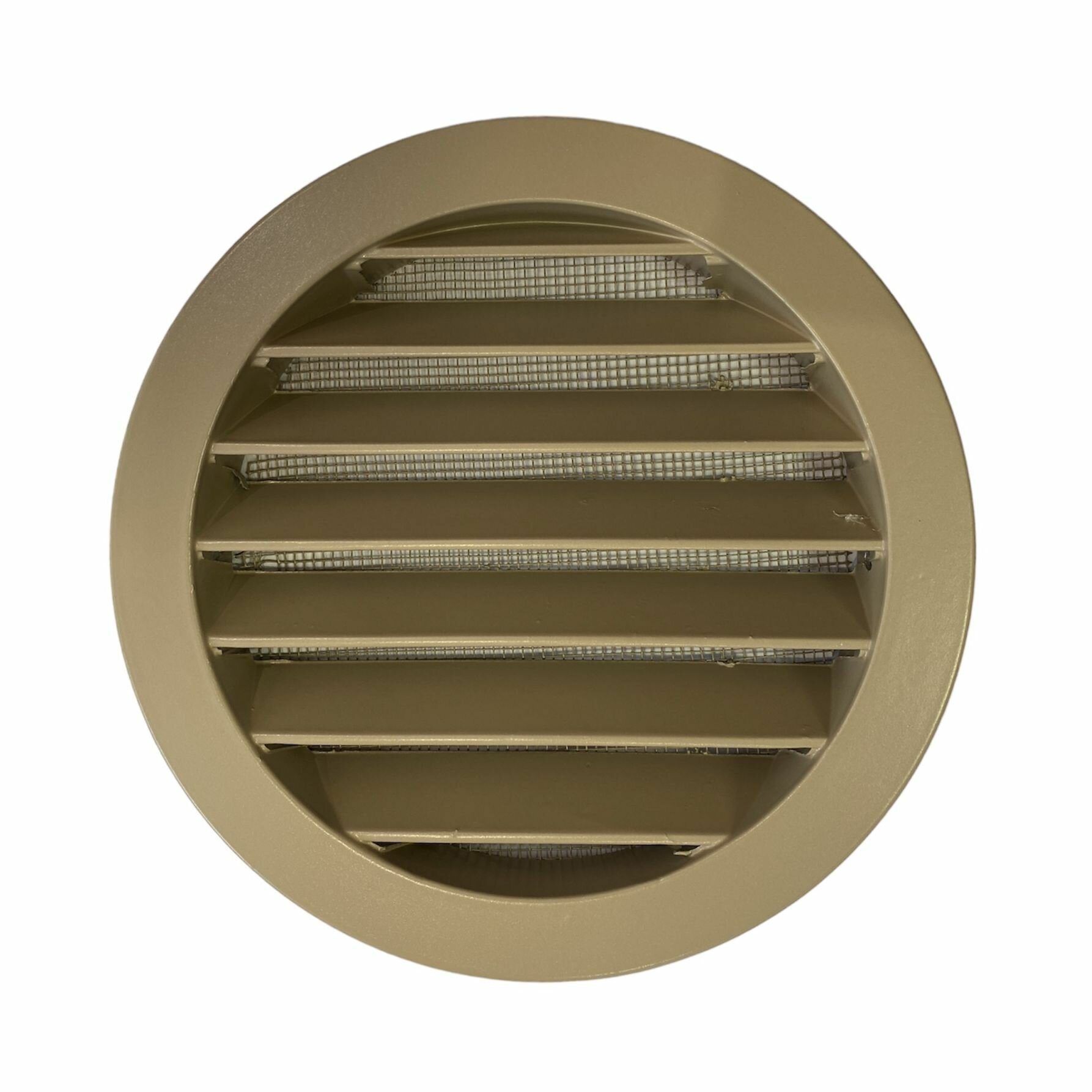 Решетка вентиляционная круглая d100 мм металлическая RAL 1001 бежевая с сеткой