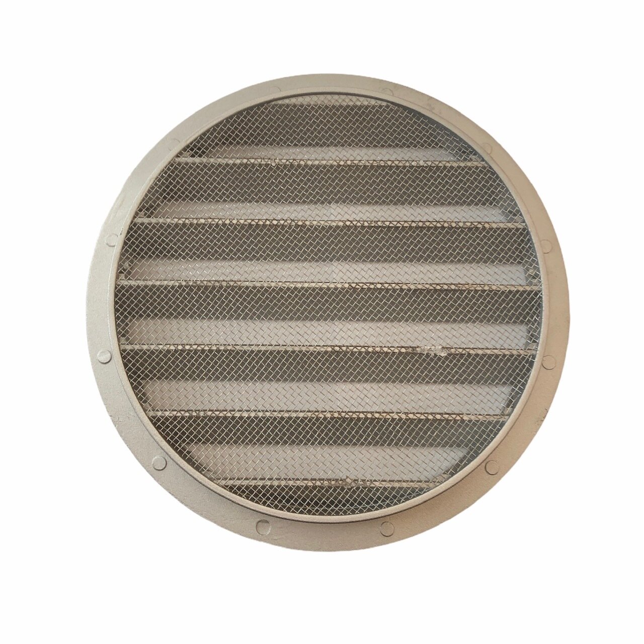 Решетка вентиляционная круглая d125 мм металлическая RAL 1019 бежевая КИВ-125 с сеткой