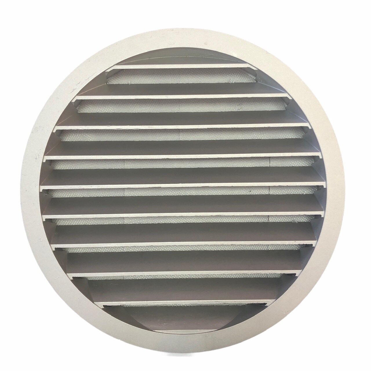 Решетка вентиляционная круглая d125 мм металлическая RAL 1019 бежевая КИВ-125 с сеткой