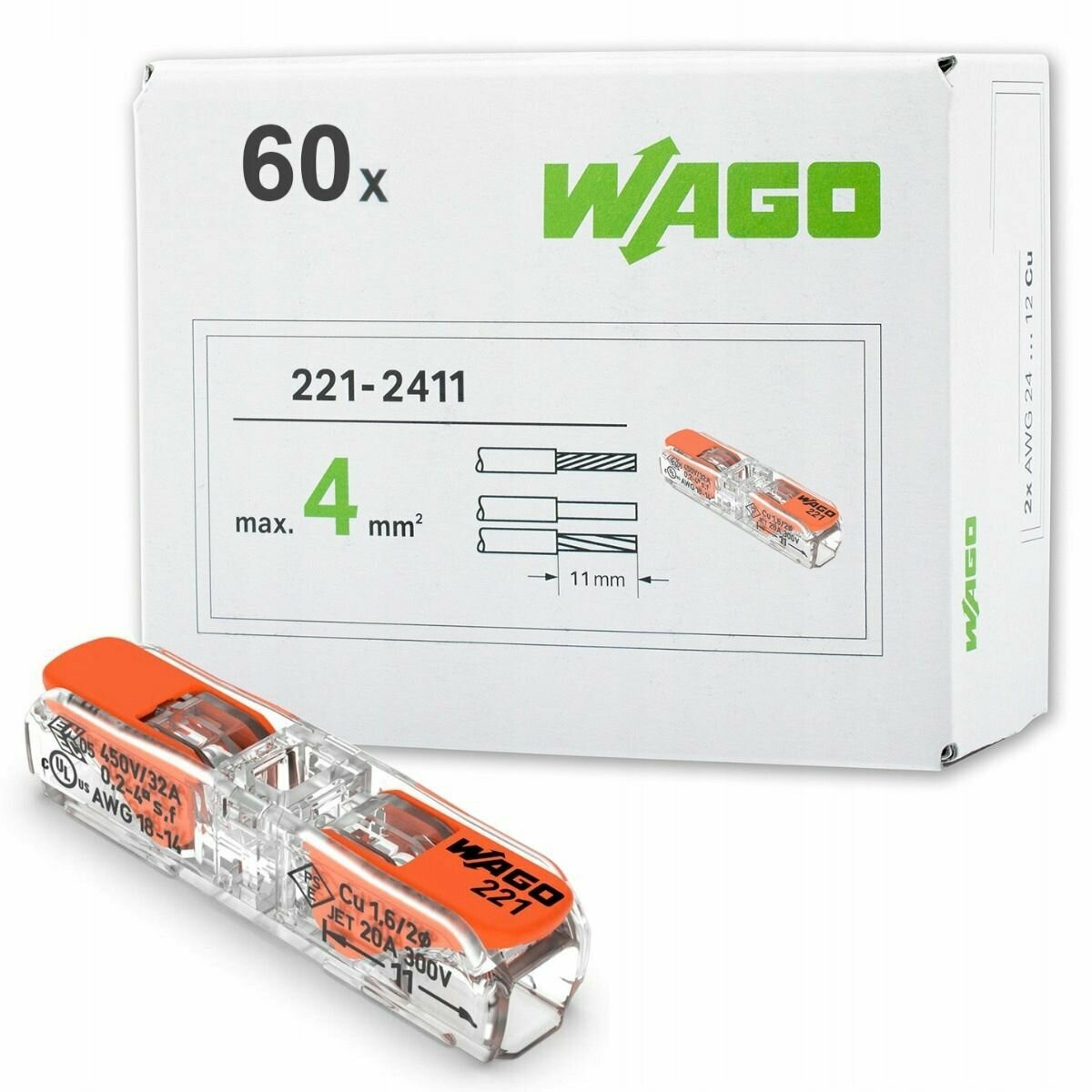 Клемма WAGO 221-2411 compact 20 шт для одножильных и многожильных проводников