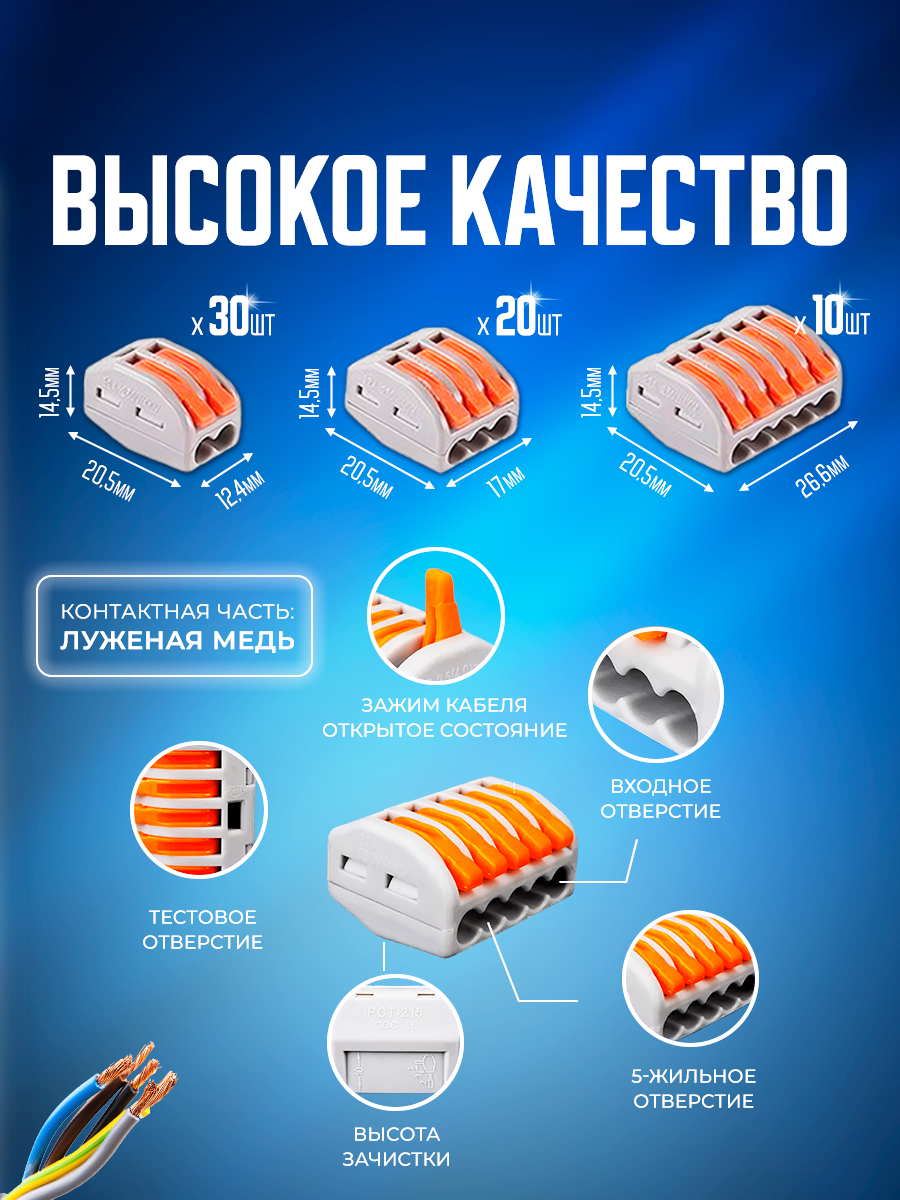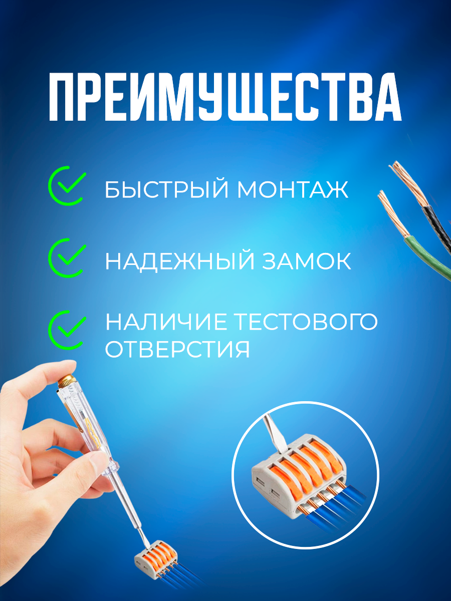 Клеммы для проводов зажимные, клемма 222-412 Электро (Аналог Wago/ ваго) - 50 шт