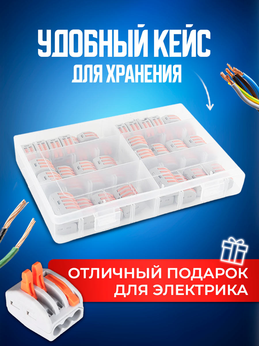 Купить Bluestar набор клеммников электромонтажных зажимных 60 штук KZO60, 2-х, 3-х, 5-ти контактные клеммы