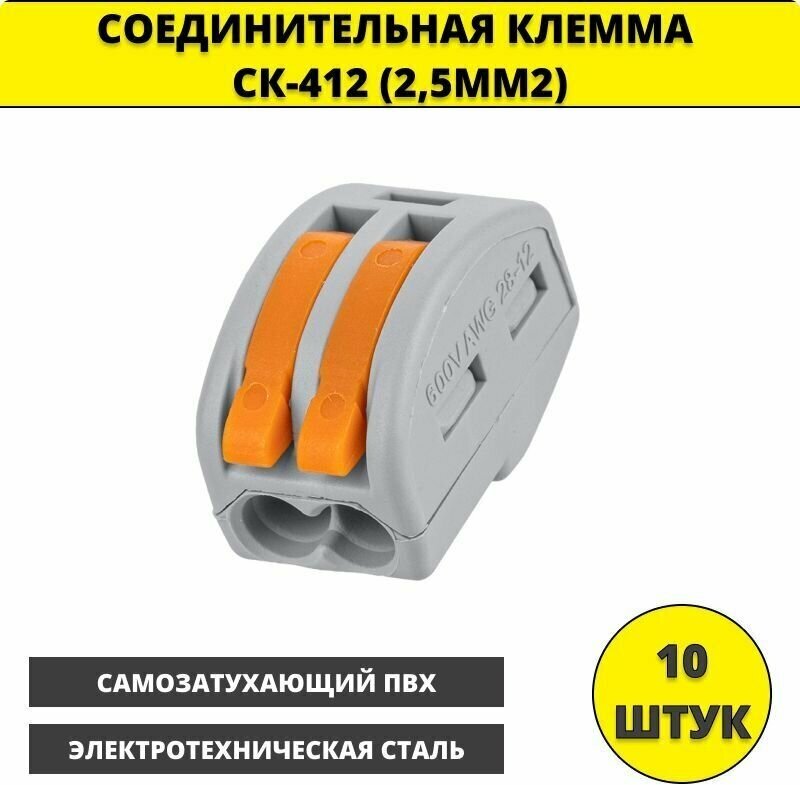 Клемма СК 412 2,5мм2 соединительная клеммная колодка для проводов, пружинный разветвитель TDM, 10 шт интересное: