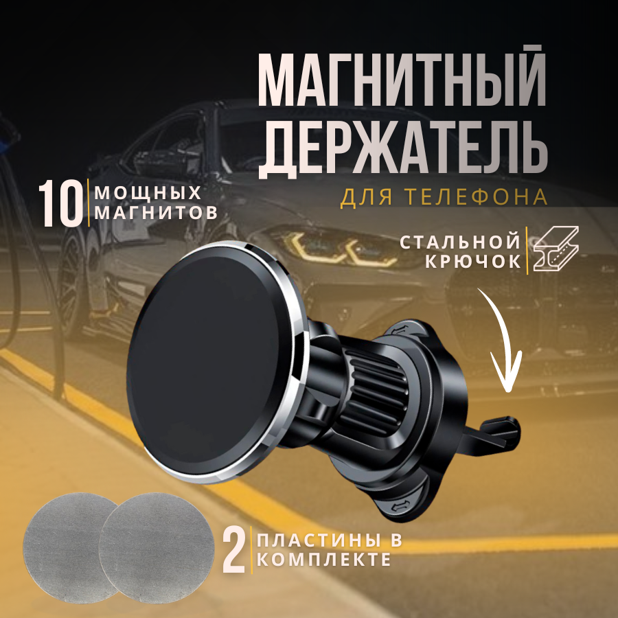Держатель для телефона автомобильный усиленный магнитный на воздуховод, 10 магнитов