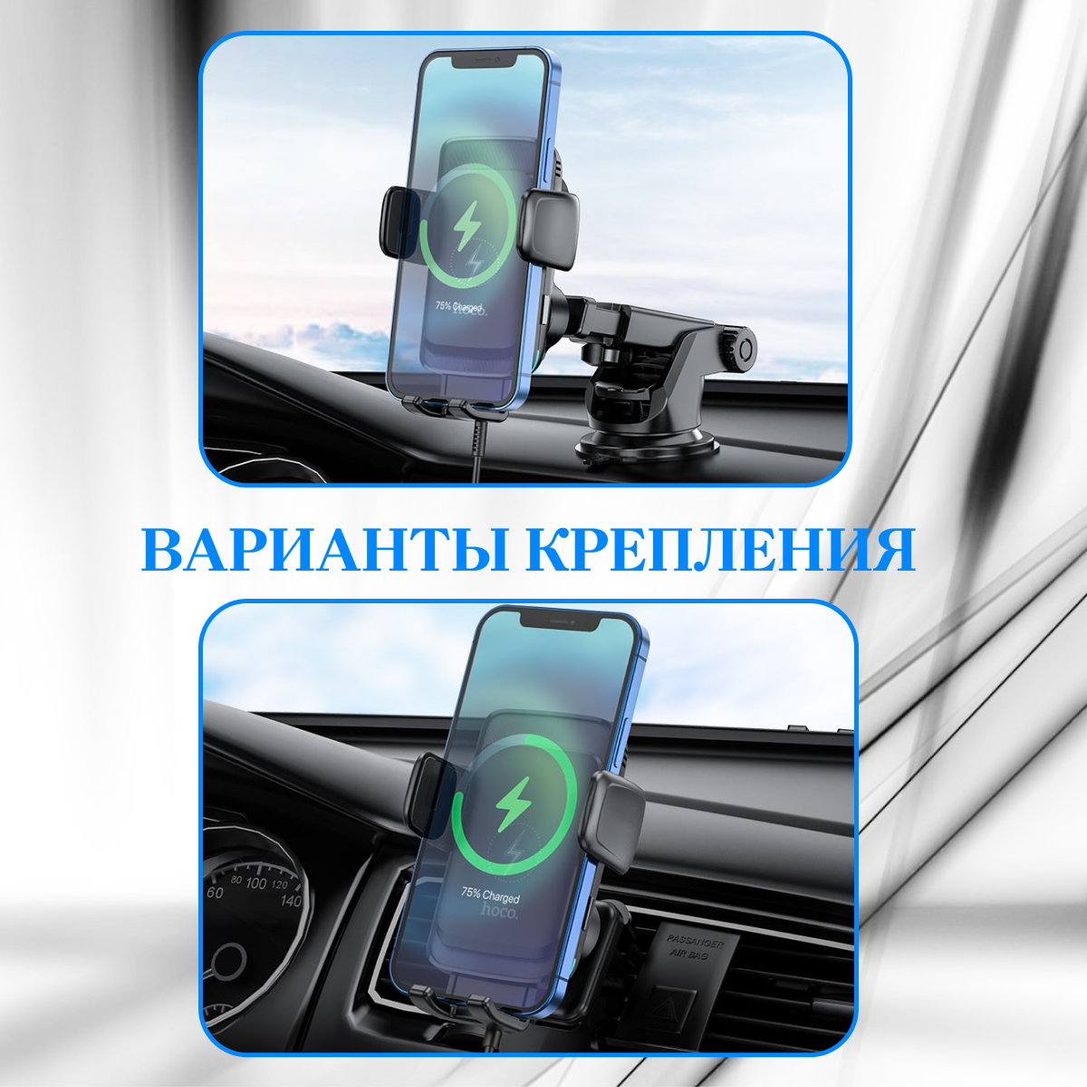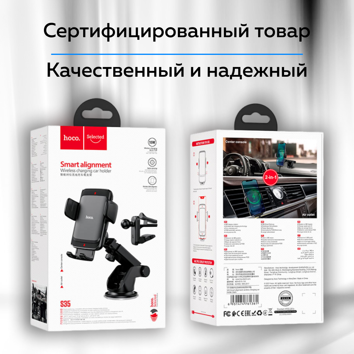 Автодержатель/ Автомобильный беспроводной держатель на решетку, стекло, торпеду с беспроводной зарядкой/Hoco S35 wireless charging car holder интересное: