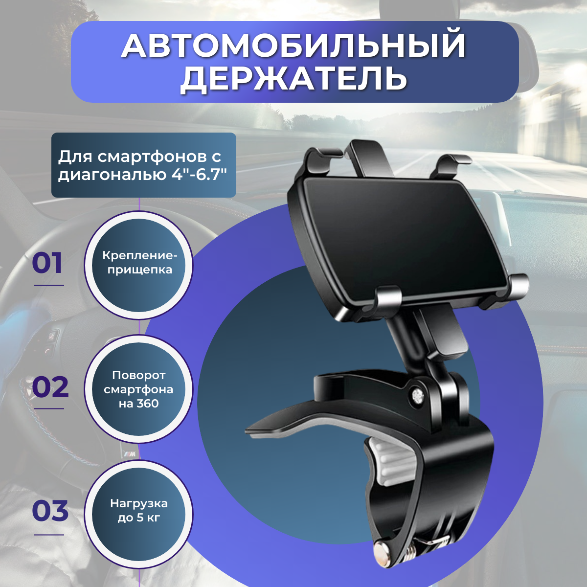 Держатель для телефона автомобильный прищепка, подставка под смартфон Maxintro интересное: