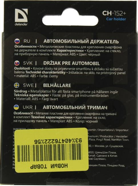 Автомобильный держатель для телефона + magnet Defender ch-152 29152