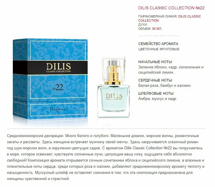 Парфюмерная вода Dilis 30ml Парфюмерная вода ClassicCollection№ 22 версия LightBlue интересное: