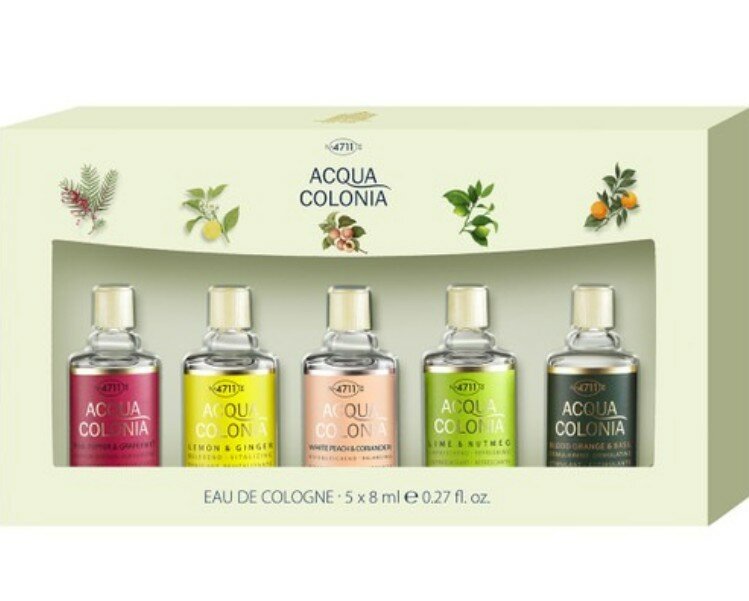 Ниже Вы можете прочитать отзывы на Maurer & Wirtz 4711 Acqua Colonia (u) Mini Set 5 X 8 мл одеколон (lemon + Lime + Blood Orange + White Peach + Lychee), ознакомится с подробными характеристиками, посмотреть интересные обзоры и фотографии на Maurer & Wirtz 4711 Acqua Colonia (u) Mini Set 5 X 8 мл одеколон (lemon + Lime + Blood Orange + White Peach + Lychee).