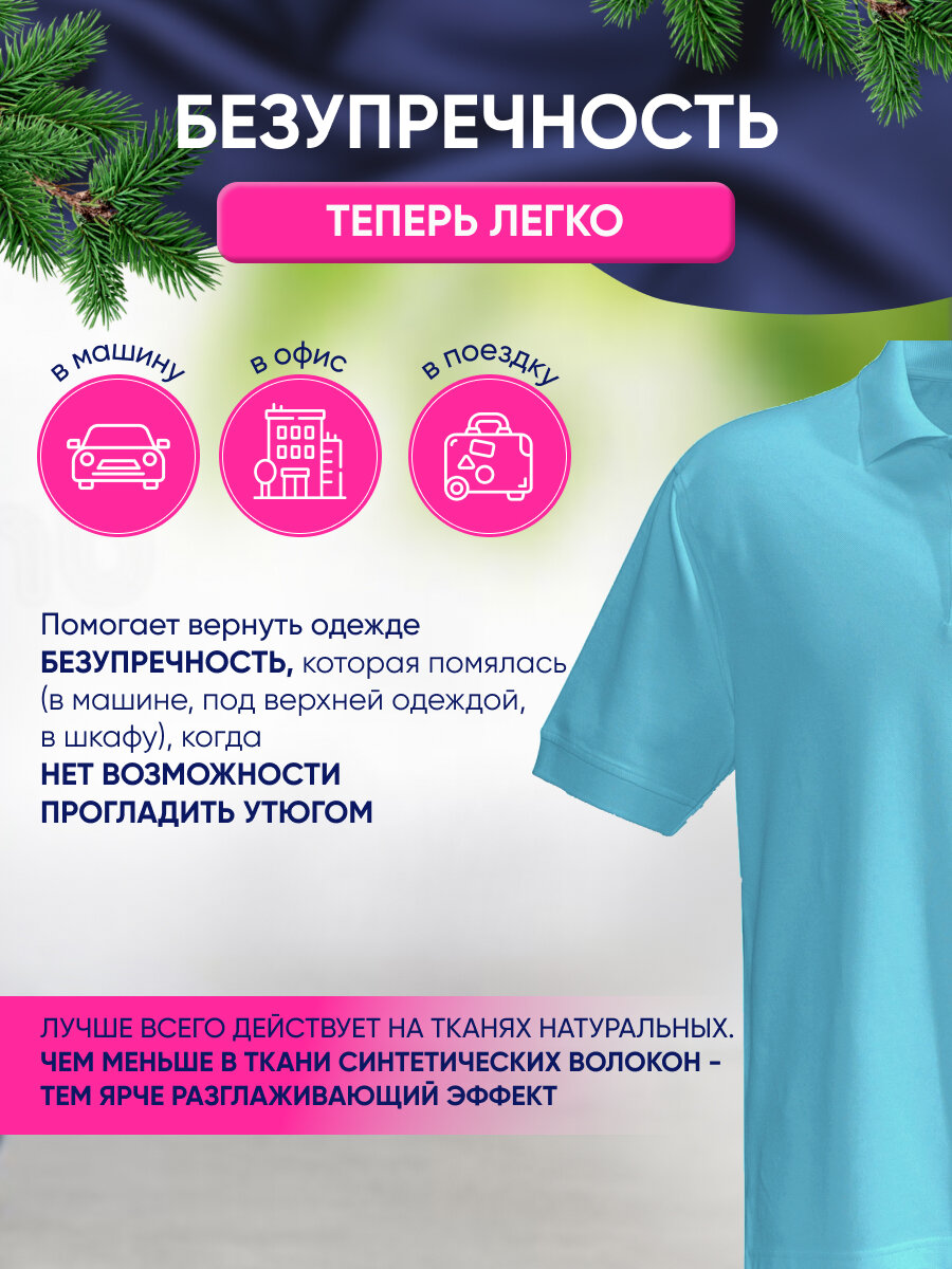 | Дополнительная информация | Четыре в одном: антистатик на водной основе, уничтожитель запахов, разглаживатель ткани, освежитель (рефрешер). |