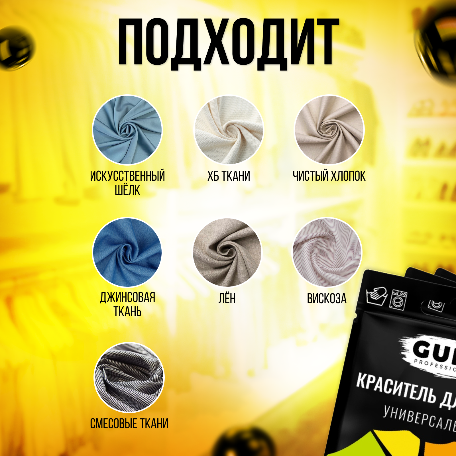 Краска для ткани черного цвета, для джинсы, хлопка и льна Guin