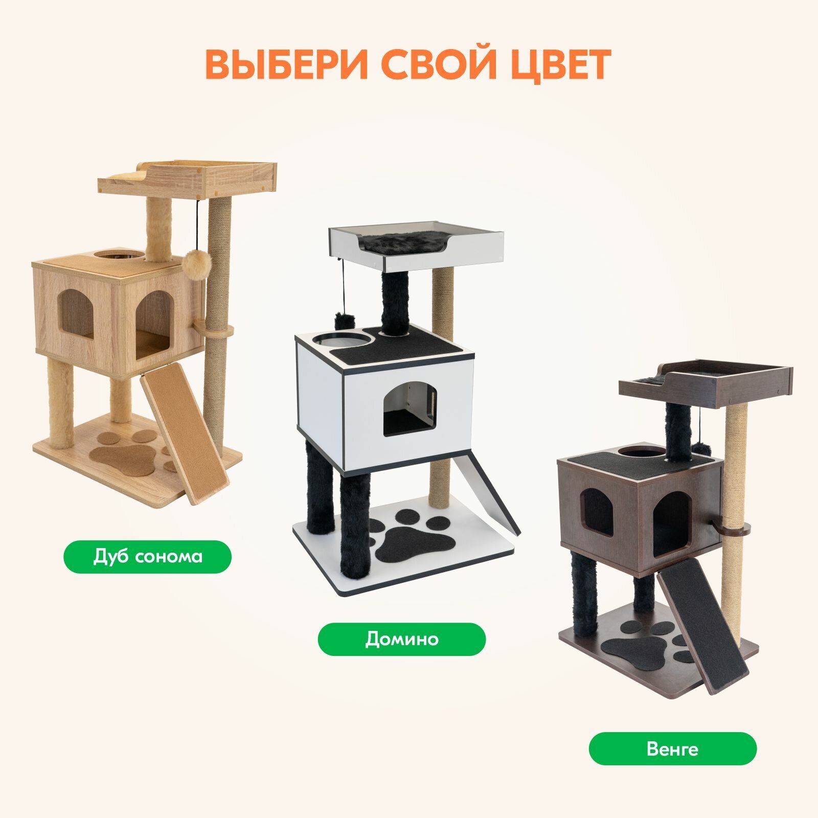 Купить Комплекс-когтеточка для кошек "PetTails" тэдди с домиком 58*54*h87см (ЛДСП, мех, ковролин, джут), домино