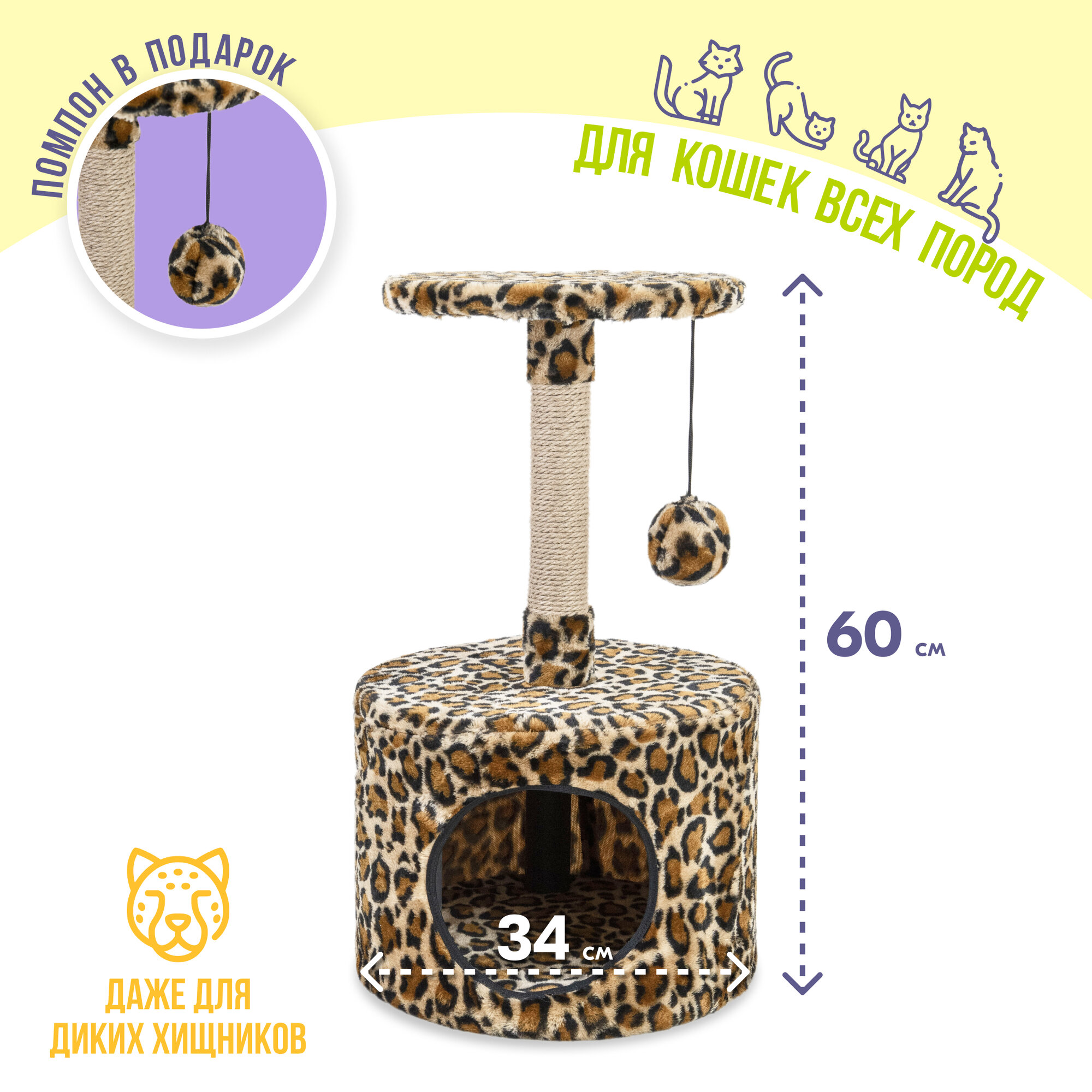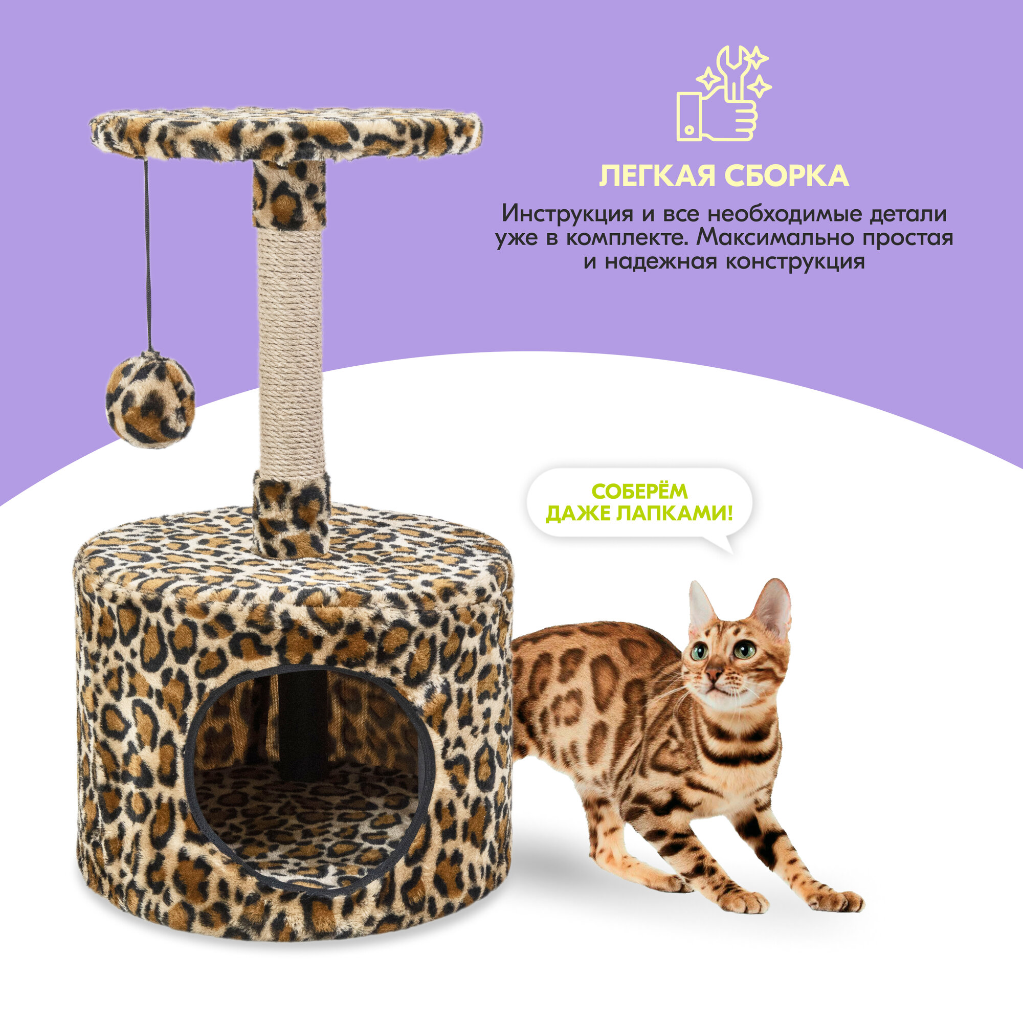 Купить Домик-когтеточка эмма "PetTails" разборный, круглый, 34х34хh60см (мех, джут) леопард