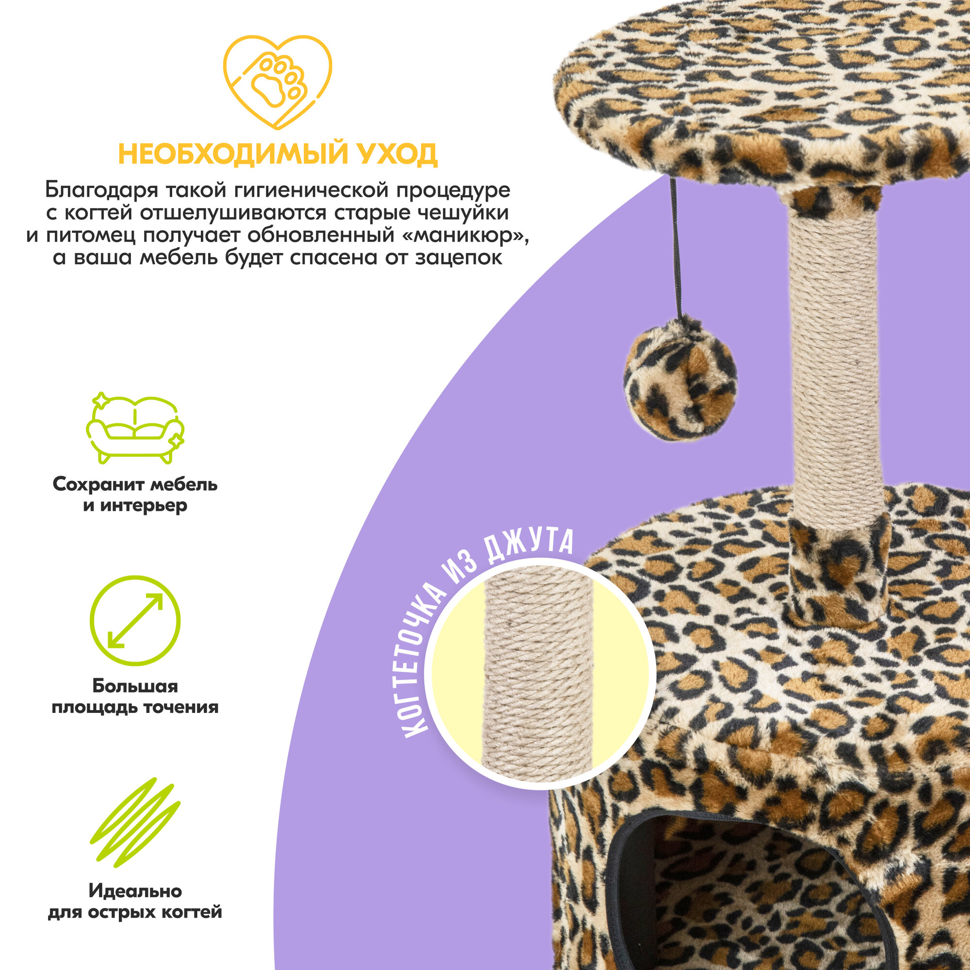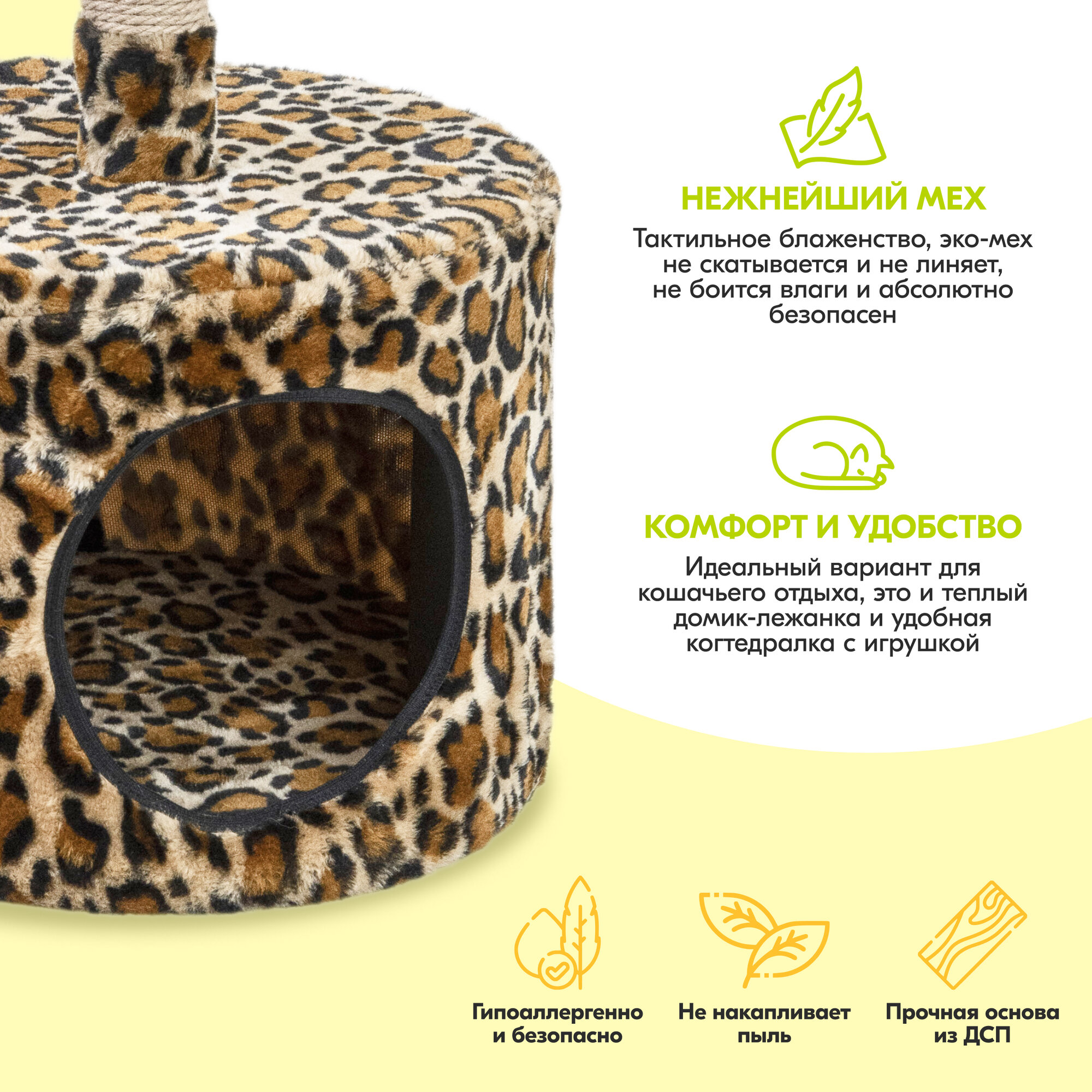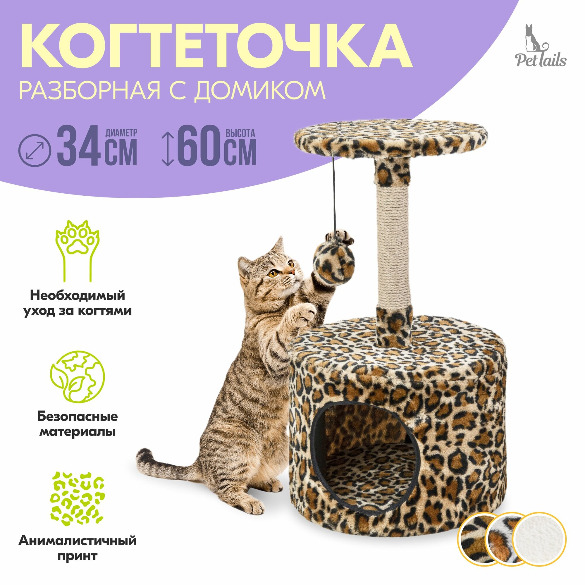 СохранитьДомик-когтеточка эмма "PetTails" разборный, круглый, 34х34хh60см (мех, джут) леопард интересное: