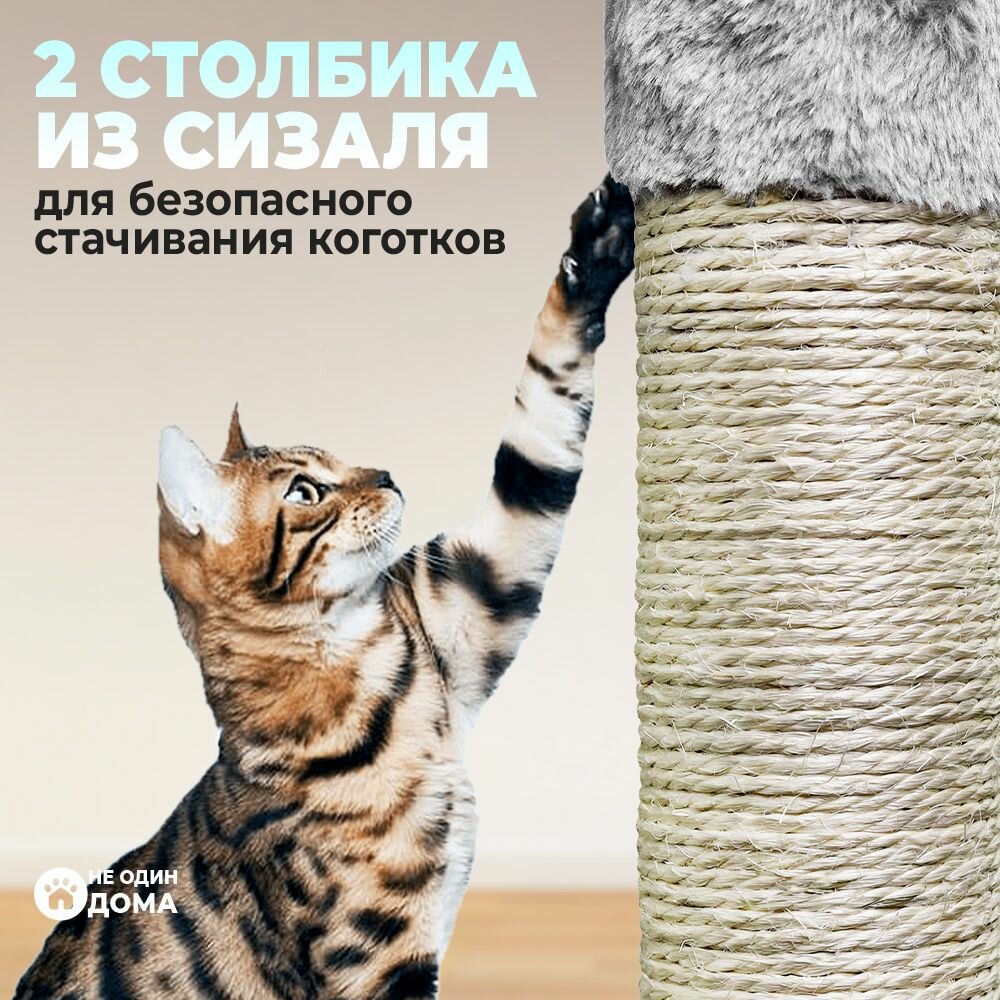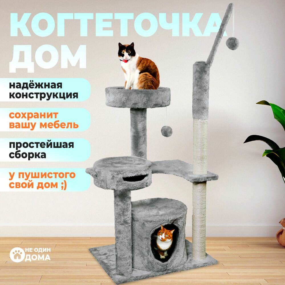 Когтеточка-комплекс для кошек, для котов, для животных, "Не Один Дома" Замок, серый, 41х51х115 см интересное: