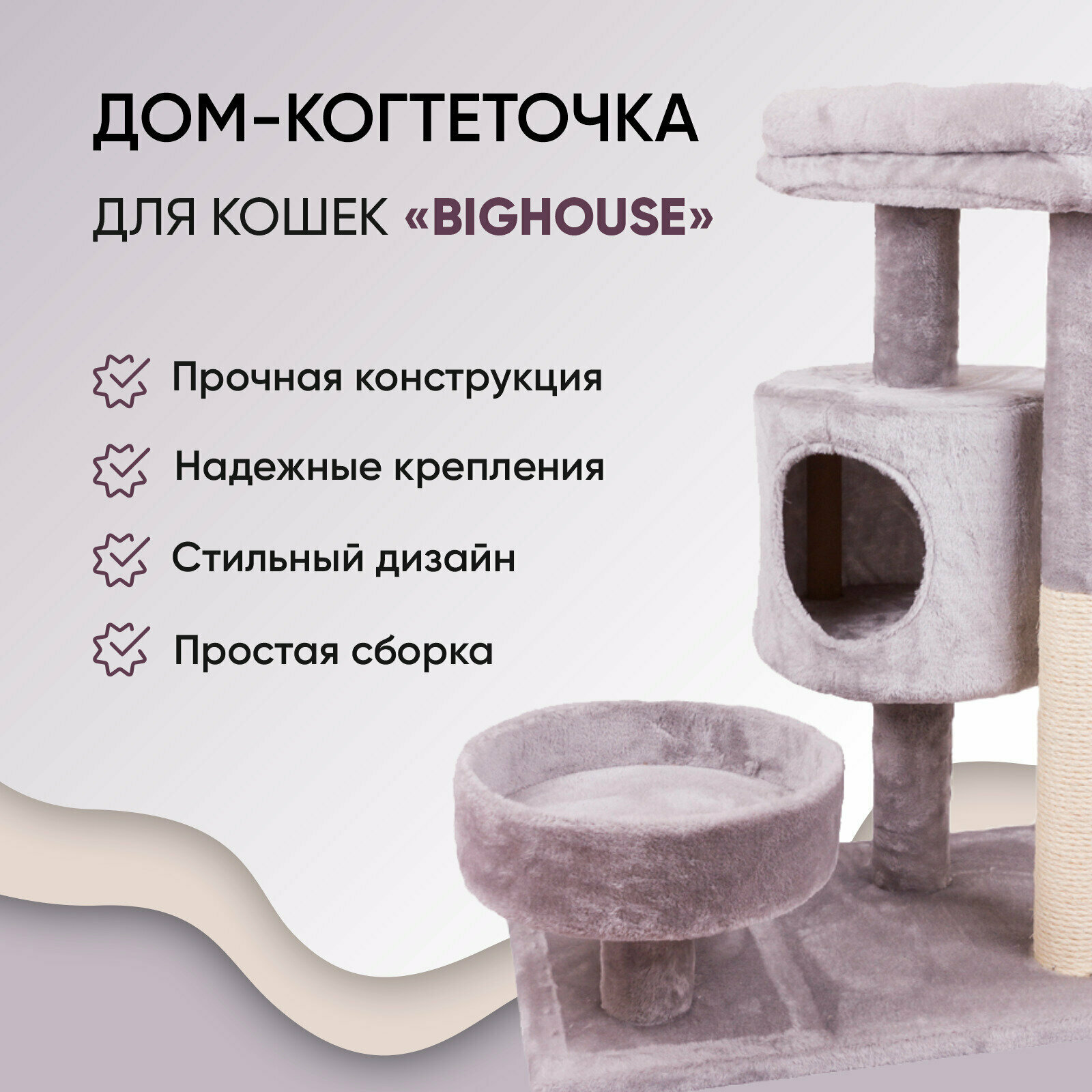 Дом-когтеточка для кошек, "Не Один Дома" BigHouse, серый интересное: