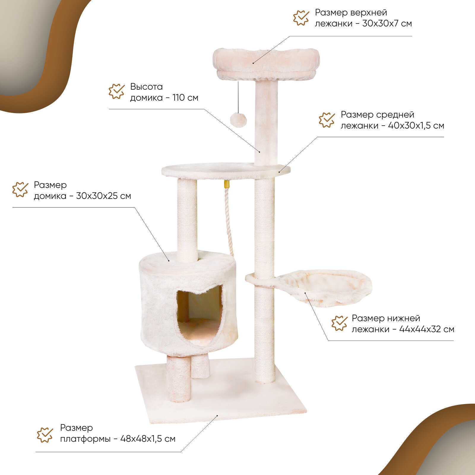 Дом-когтеточка, комплекс для кошек, "Не Один Дома" Лён, бежевый интересное: