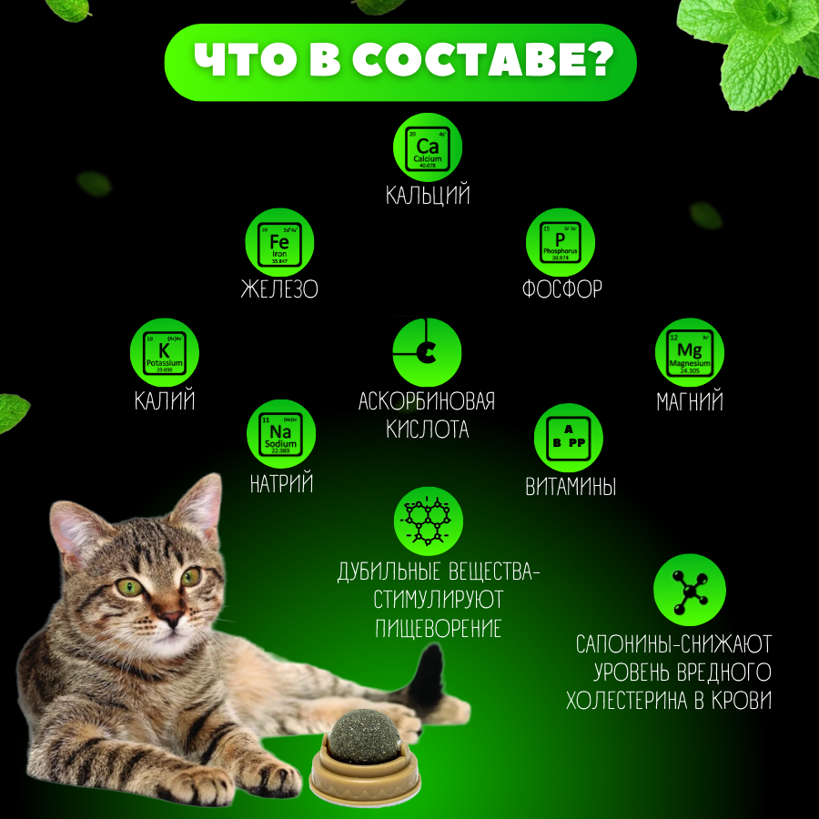 Кошачья мята / Шарик с кошачьей мятой на стену / Лакомство для кошек интересное: