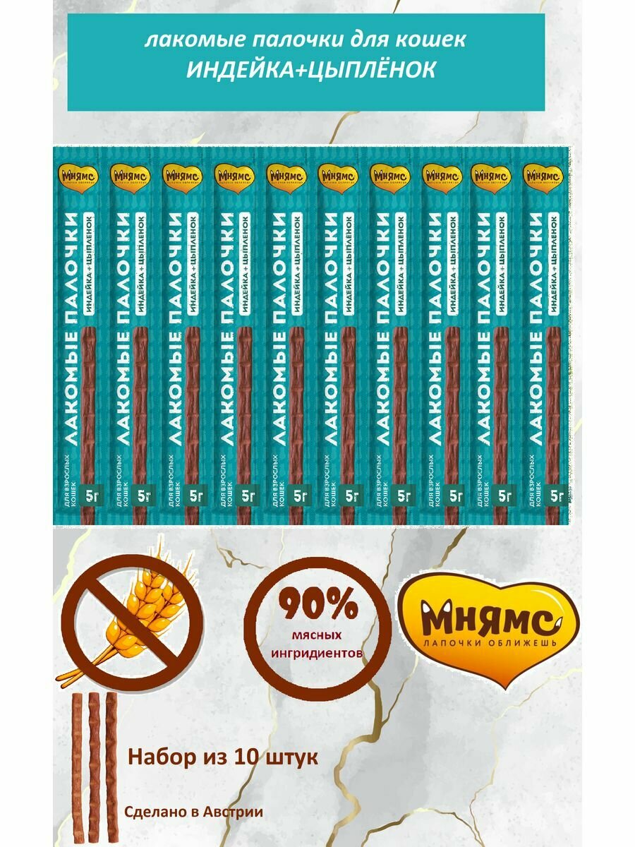 Мнямс лакомые палочки 13,5 см для кошек ягненок и индейкой 10х5 г, 1 уп