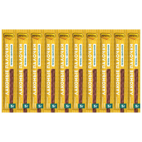 Купить Мнямс Лакомые палочки 13,5 см 10 шт по 5 г, для кошек с цыпленком и печенью