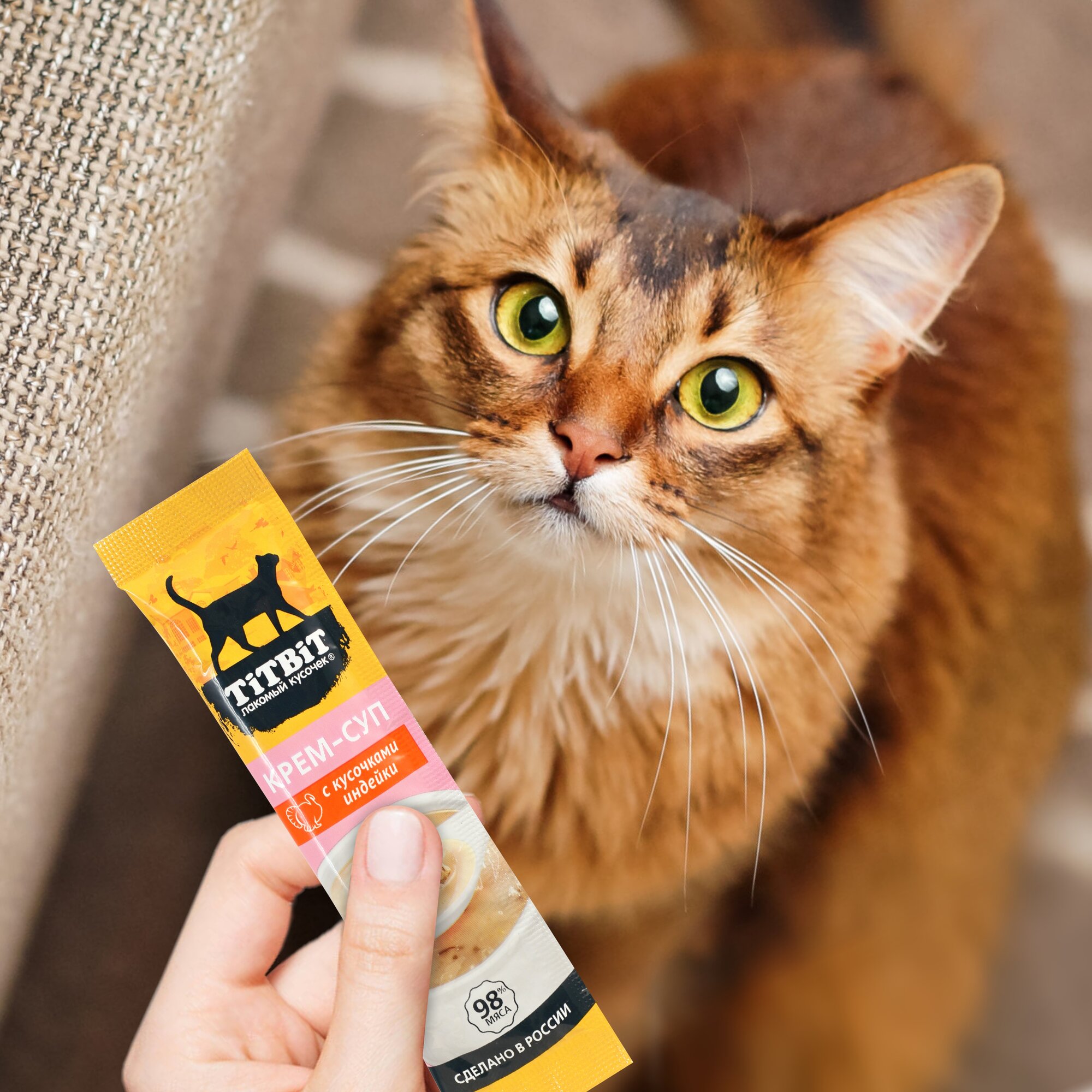 Лакомство для кошек TiTBiT Крем-суп с кусочками индейки, 10г х 4 шт. интересное: