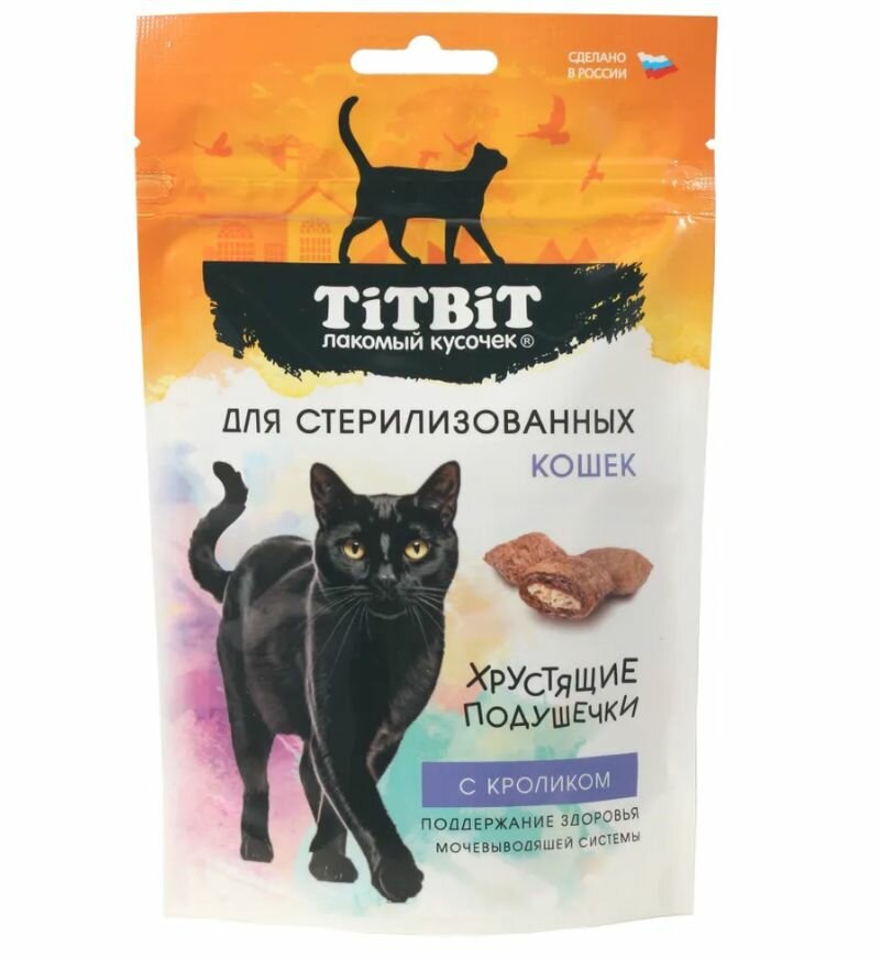 Лакомство для стерилизованных кошек TiTBiT Хрустящие подушечки с кроликом 60г интересное: