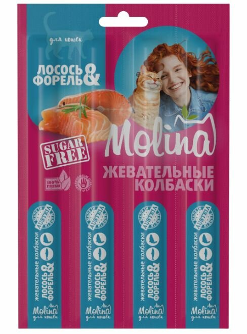 Лакомства Molina жевательные колбаски для любых кошек Лосось и Форель 20 г. - 2 шт интересное: