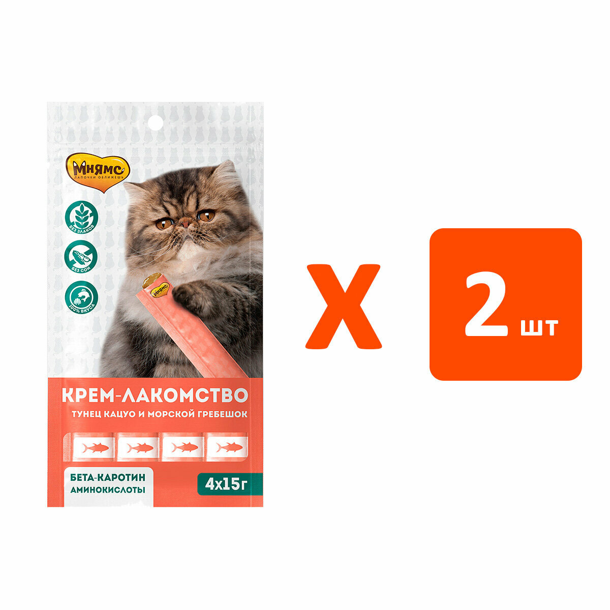 Лакомство мнямс для кошек крем с тунцом Кацуо и морским гребешком (4 шт х 2) интересное: