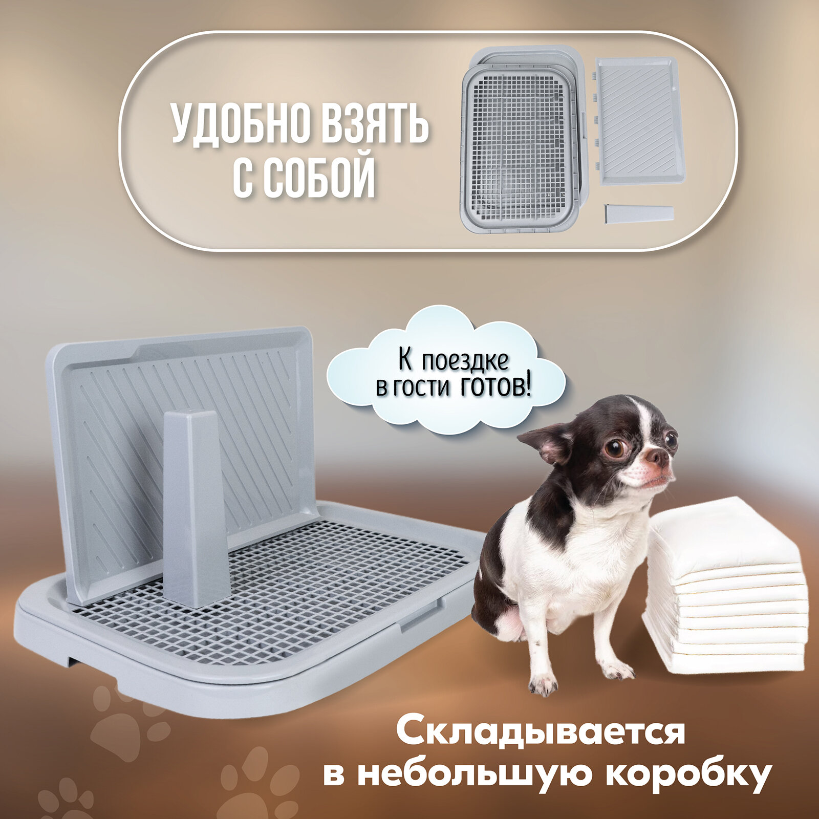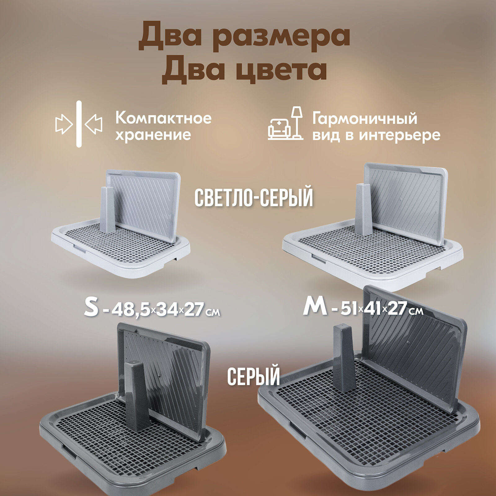 Туалет для собак барон "PetTails" со столбиком и стенкой 51*41*27см (полипропилен) светло-серый интересное: