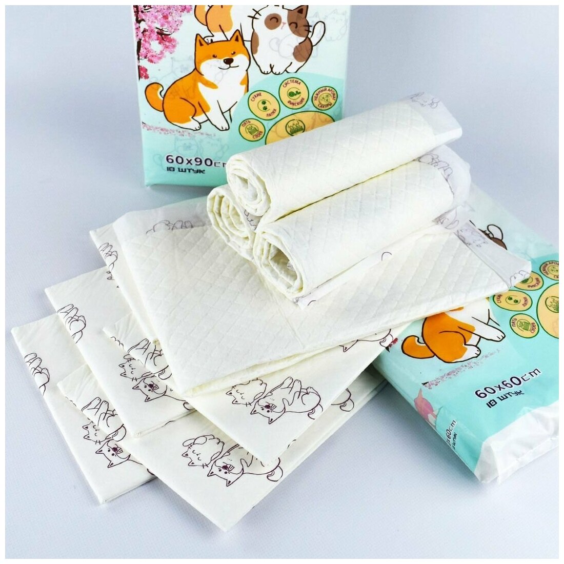 Одноразовые пелёнки c липким фиксирующим слоем для животных, с ароматом сакуры Toshiko 10 шт 60х90 см