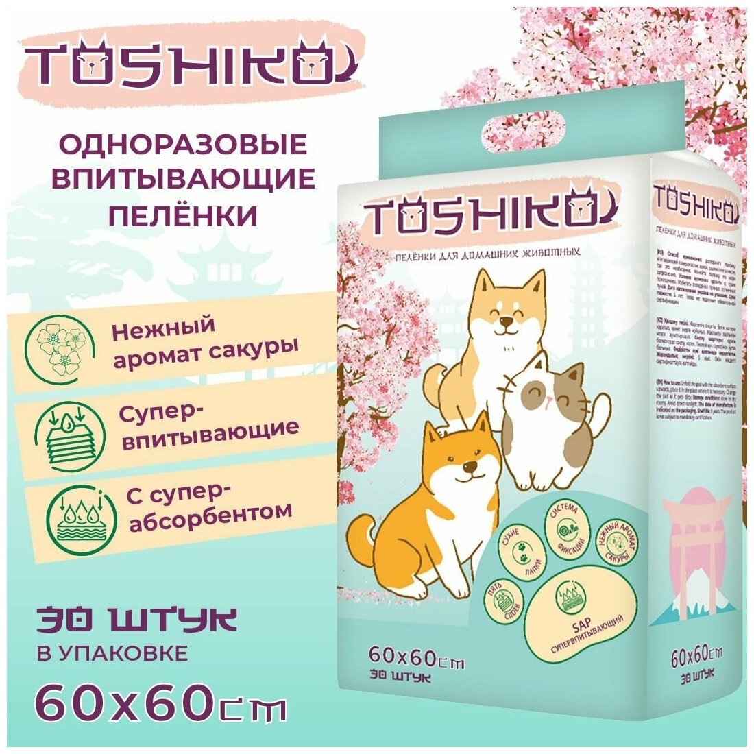 Пеленки впитывающие одноразовые для животных с ароматом сакуры Toshiko 60 х 90 см 30 шт (1 шт)