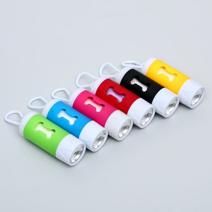 Купить Контейнер с пакетами для уборки за собаками с фонариком (15 пакетов), 9,8х3,8х3,8 см, микс
