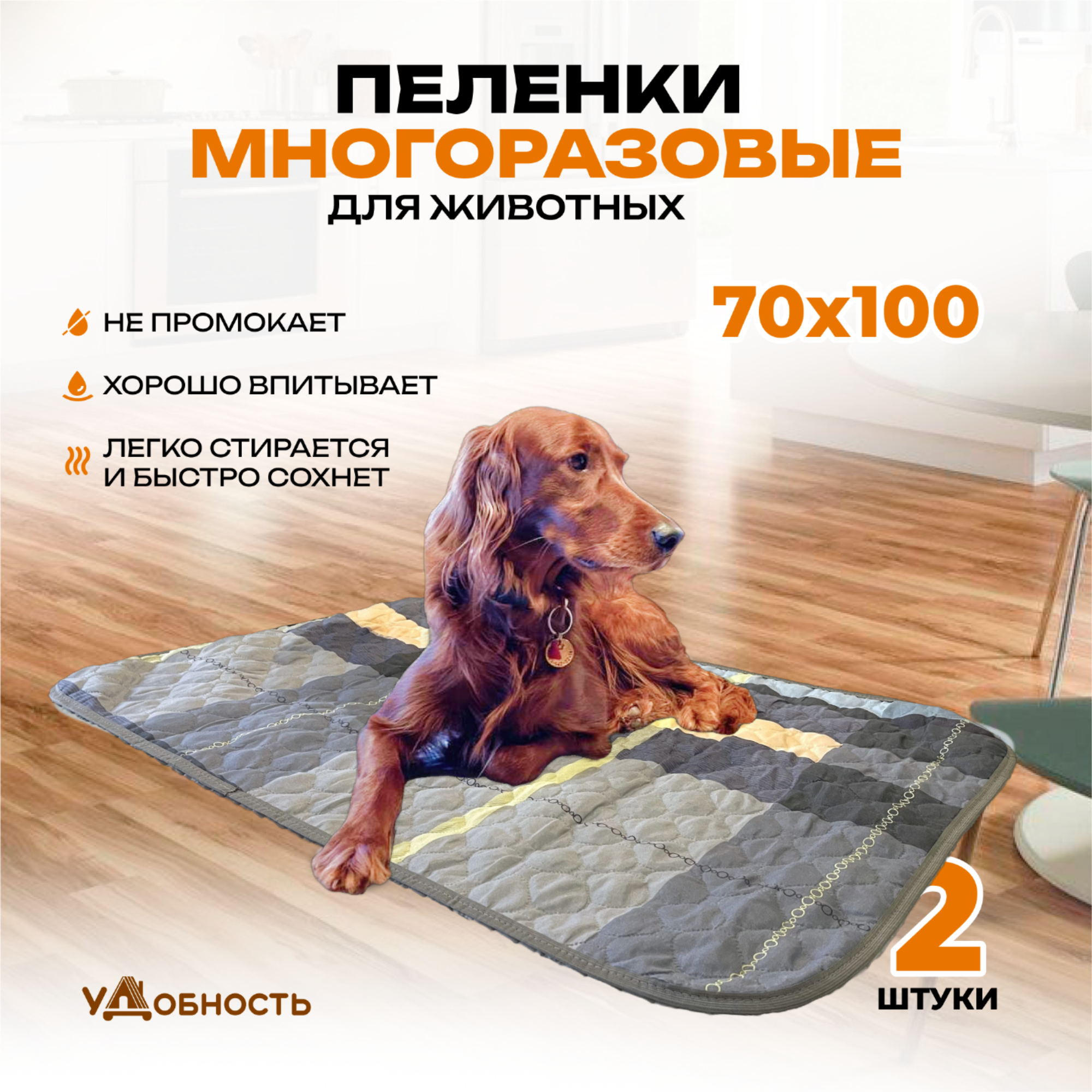 Пеленка многоразовая для собак и животных, пеленки для собак и кошек удобность 70 х 100 см, серая, 2 штуки интересное:
