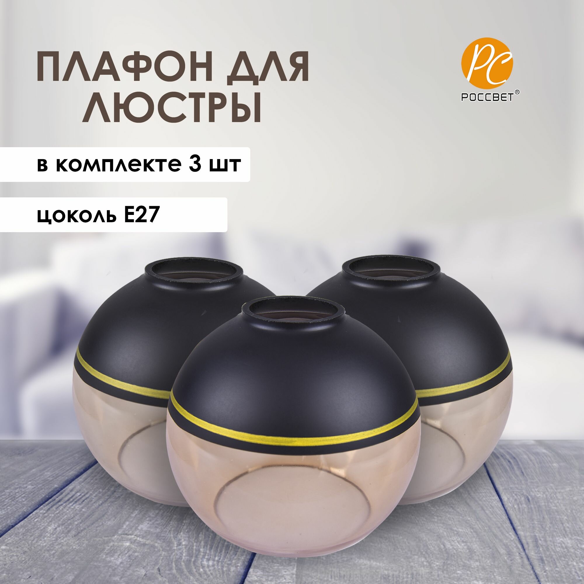 Плафоны стеклянные, полушар бежевый с черной полосой, запасные для люстры Е27, 3 шт интересное:
