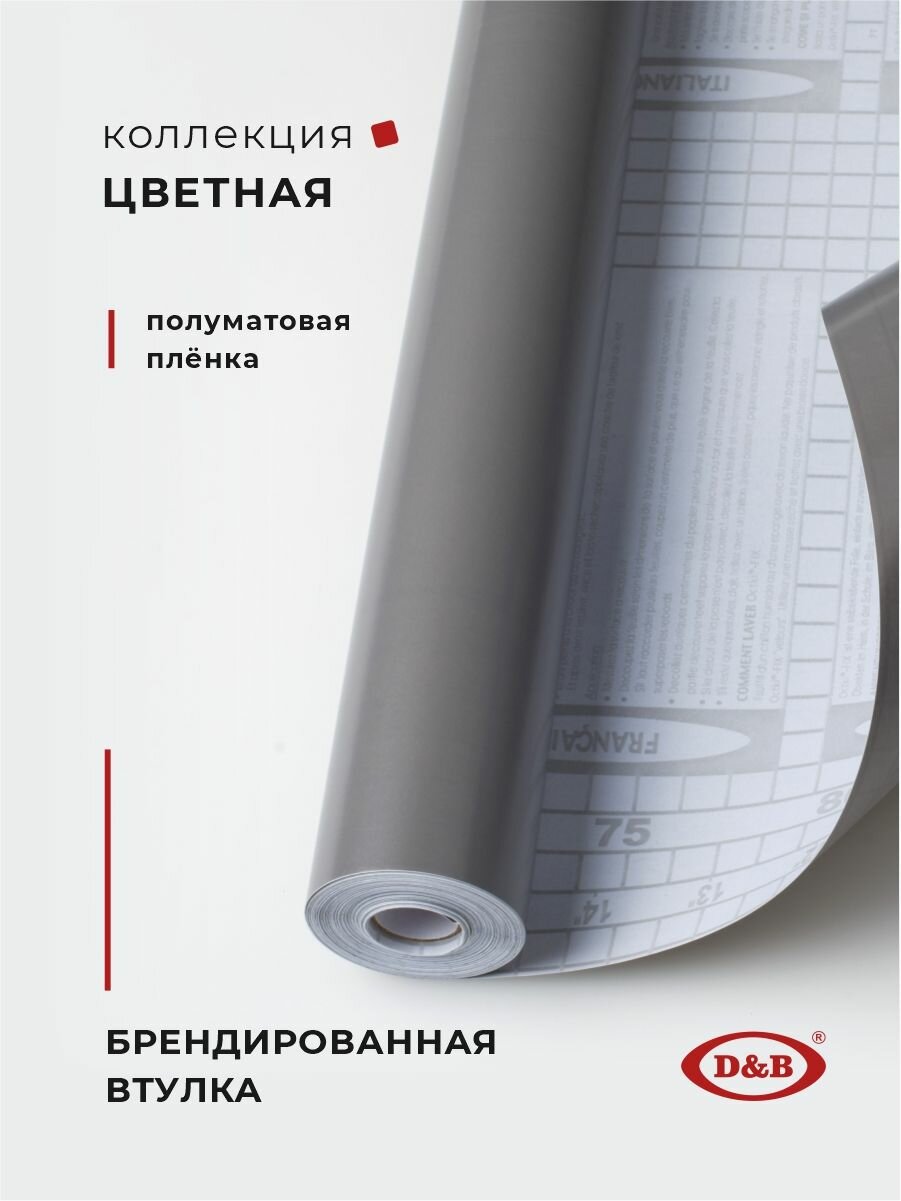 Пленка самоклеящаяся D&B ПВХ для мебели цветная серая, рулон 0.45*8м, плотная, толщина 0.12мм интересное: