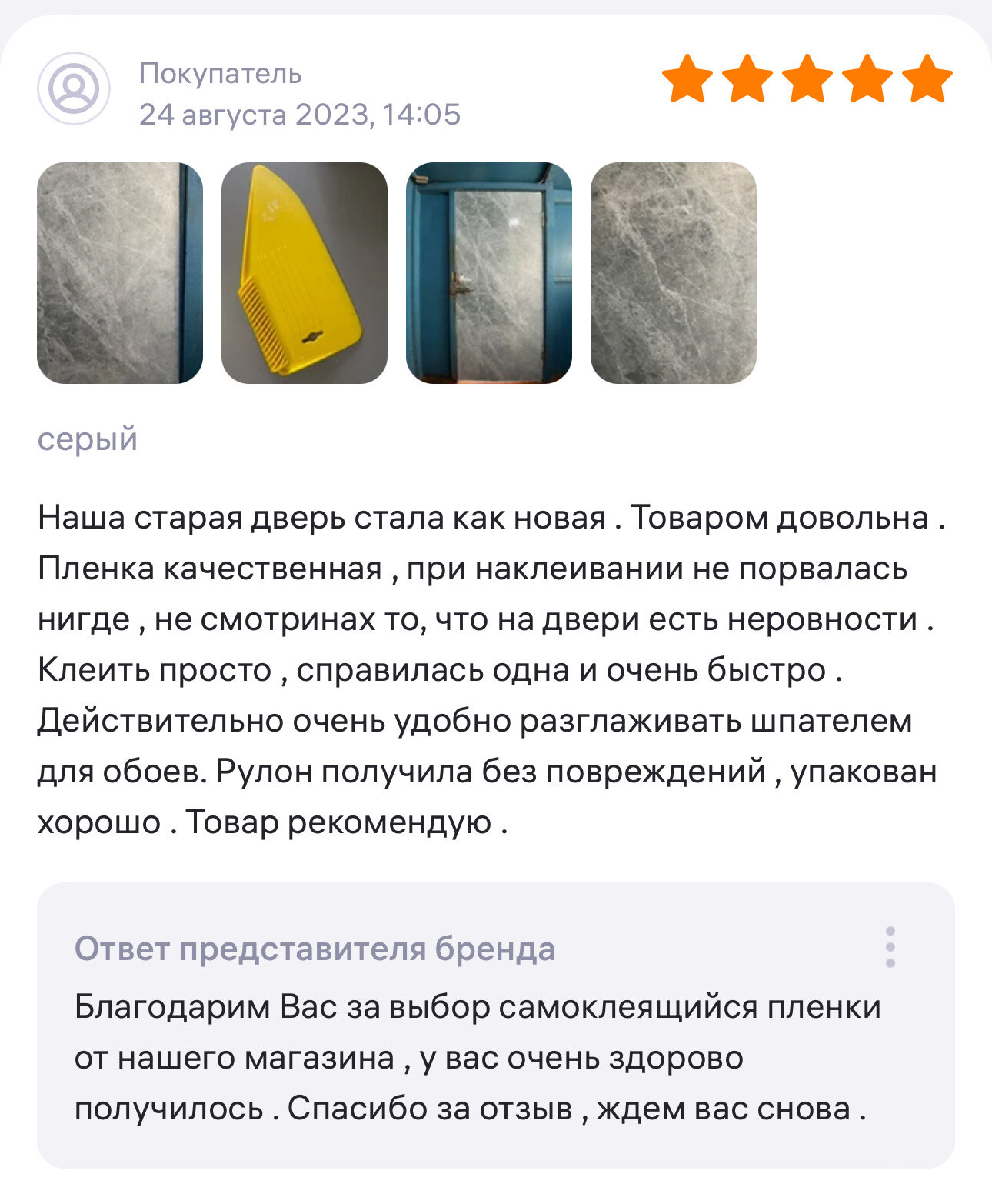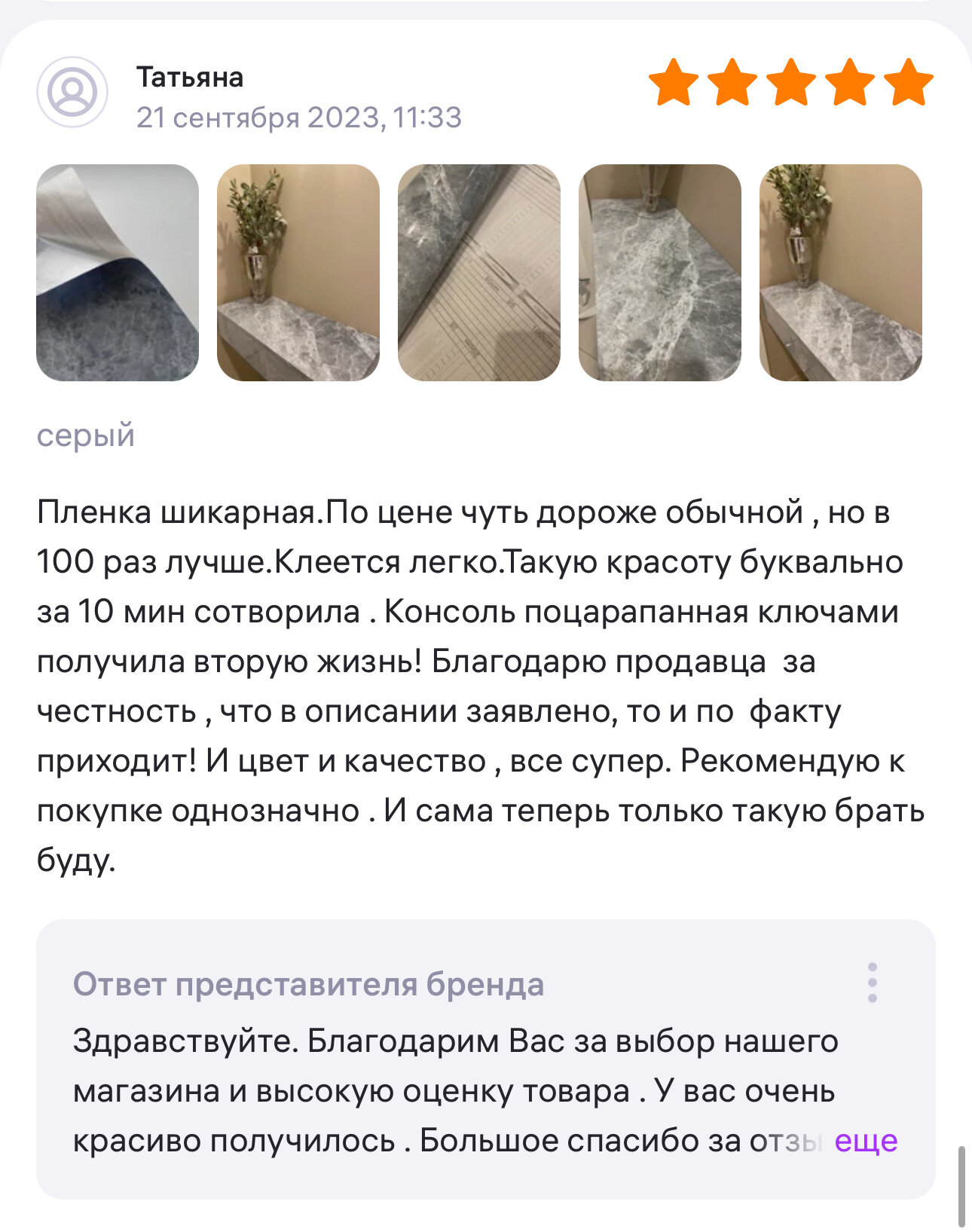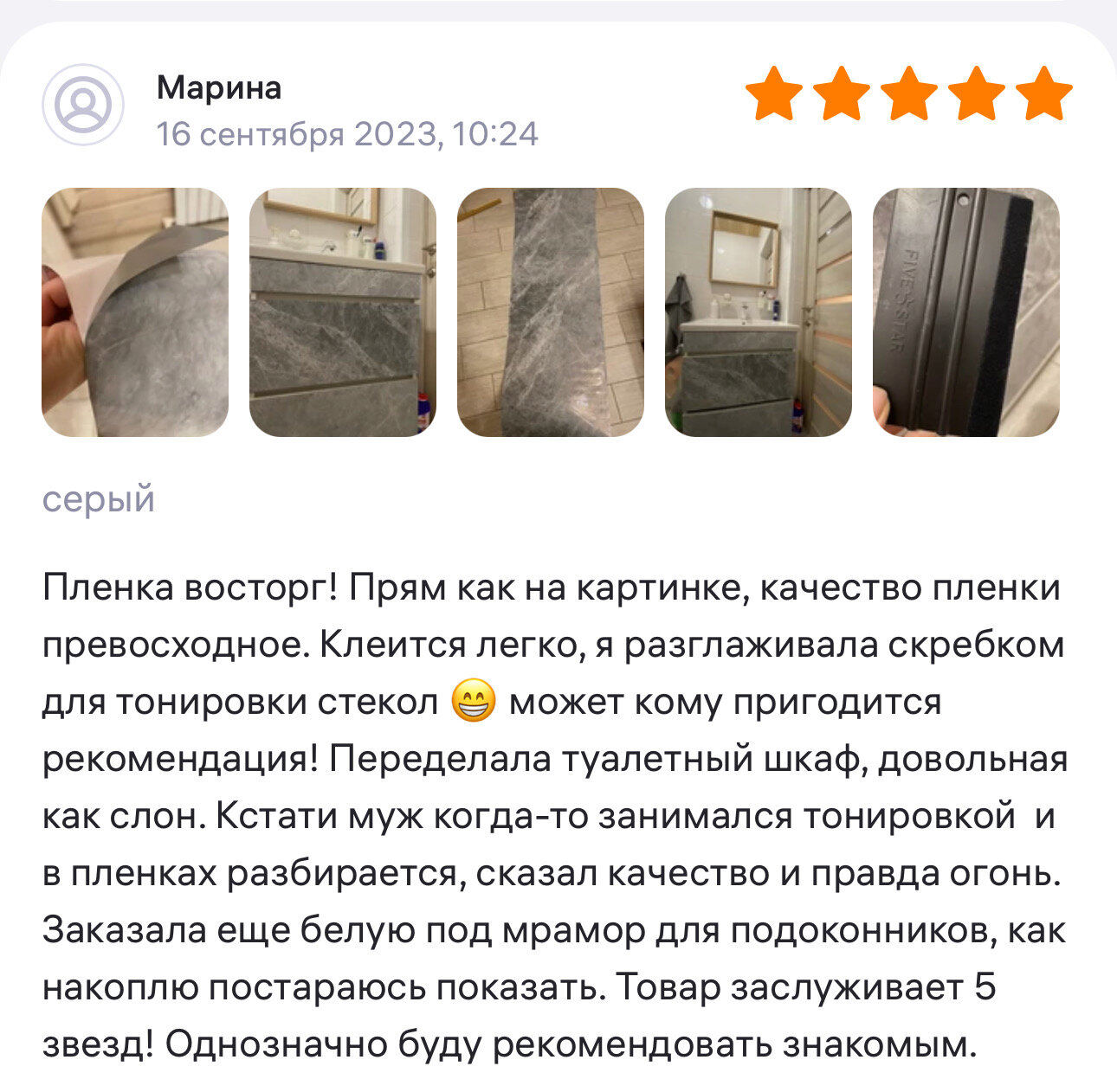 Ниже Вы можете прочитать отзывы на Пленка ПВХ самоклеящаяся плотная защитная для мебели 60см * 3 дубайский серый, ознакомится с подробными характеристиками, посмотреть интересные обзоры и фотографии на Пленка ПВХ самоклеящаяся плотная защитная для мебели 60см * 3 дубайский серый.