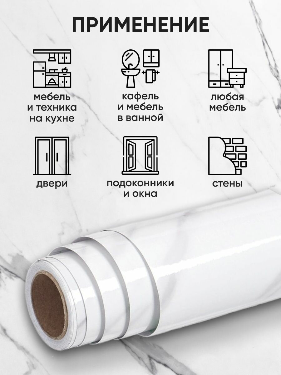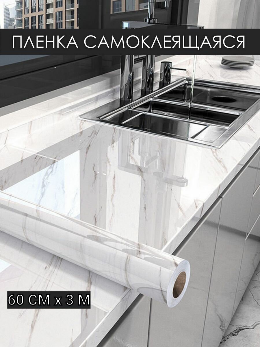 Купить Пленка ПВХ самоклеящаяся плотная для мебели 60см * 3м белый мрамор