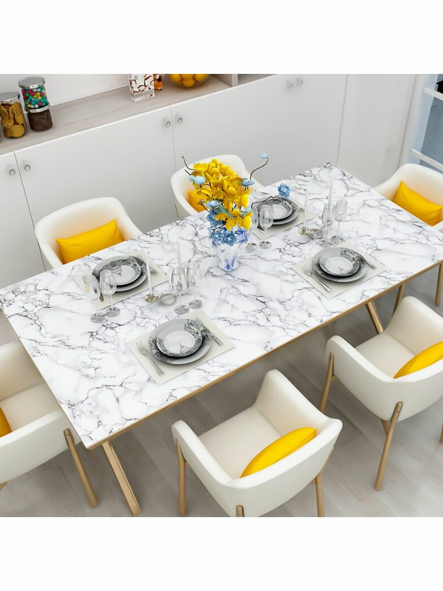 Пленка самоклеящаяся плотная для мебели 60 см * 3 м белая мраморная