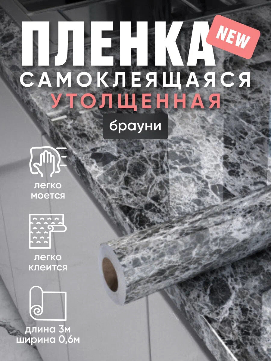 Пленка ПВХ самоклеящаяся плотная для мебели 60см * 3м под мрамор