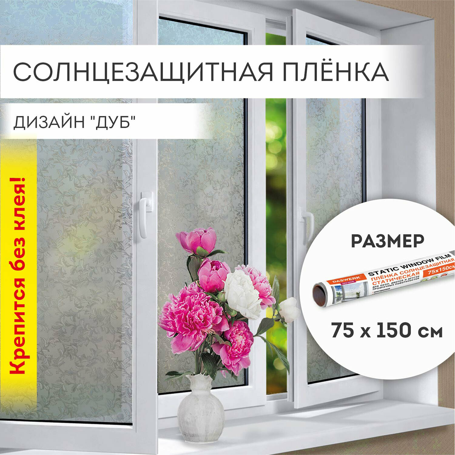 Пленка солнцезащитная для окон самоклеящаяся статическая без клея 75х150см Флора Daswerk, 608576